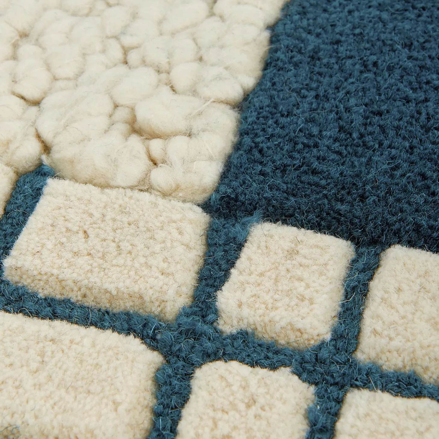 Gloria joue avec les formes et les perspectives, créant un motif carreaux à la fois original et apaisant.