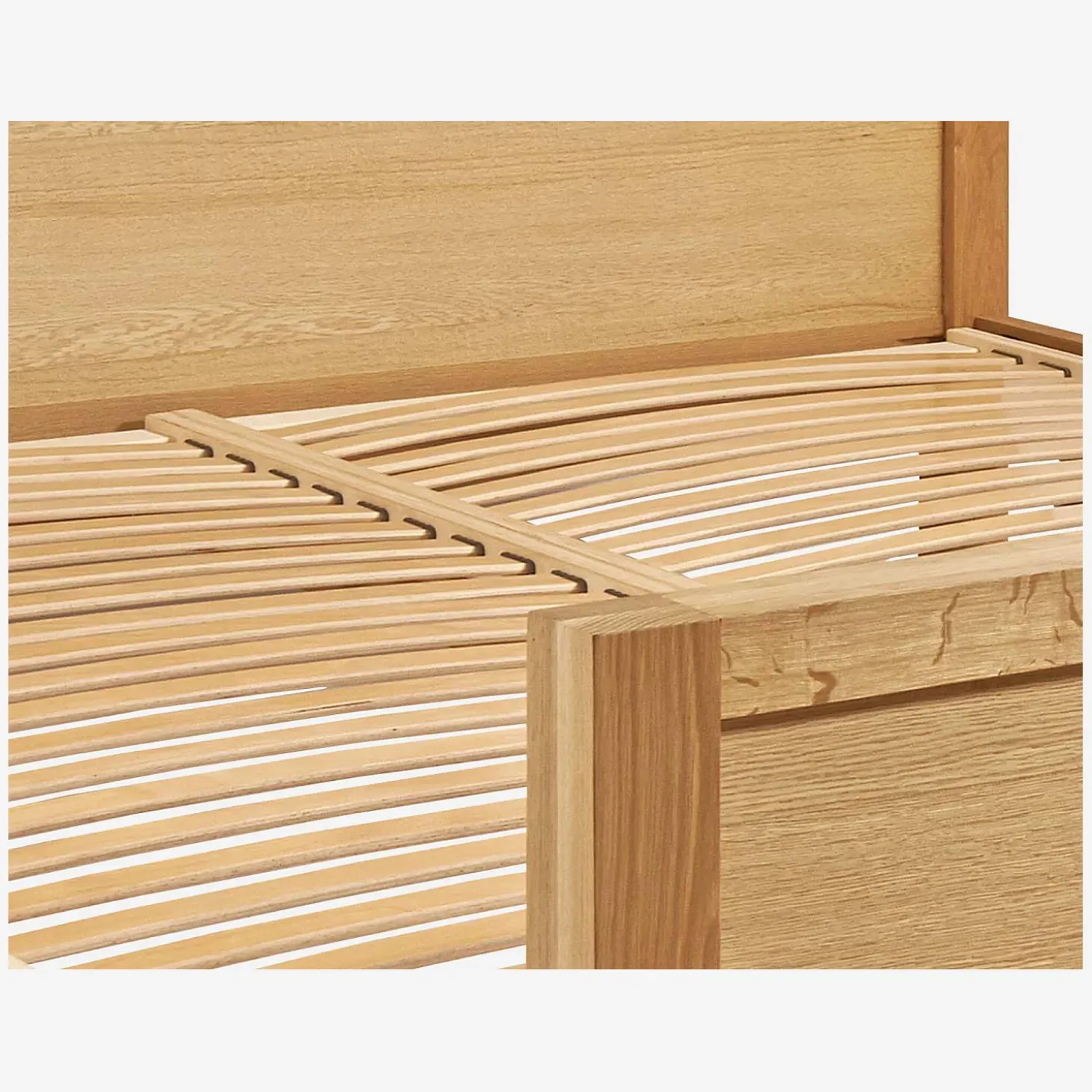 Le lit Hanita est l’archétype du cadre de lit. Sa structure en chêne propose un couchage confortable de 140 x 200 cm. Le sommier à lattes inclus est en hêtre massif.