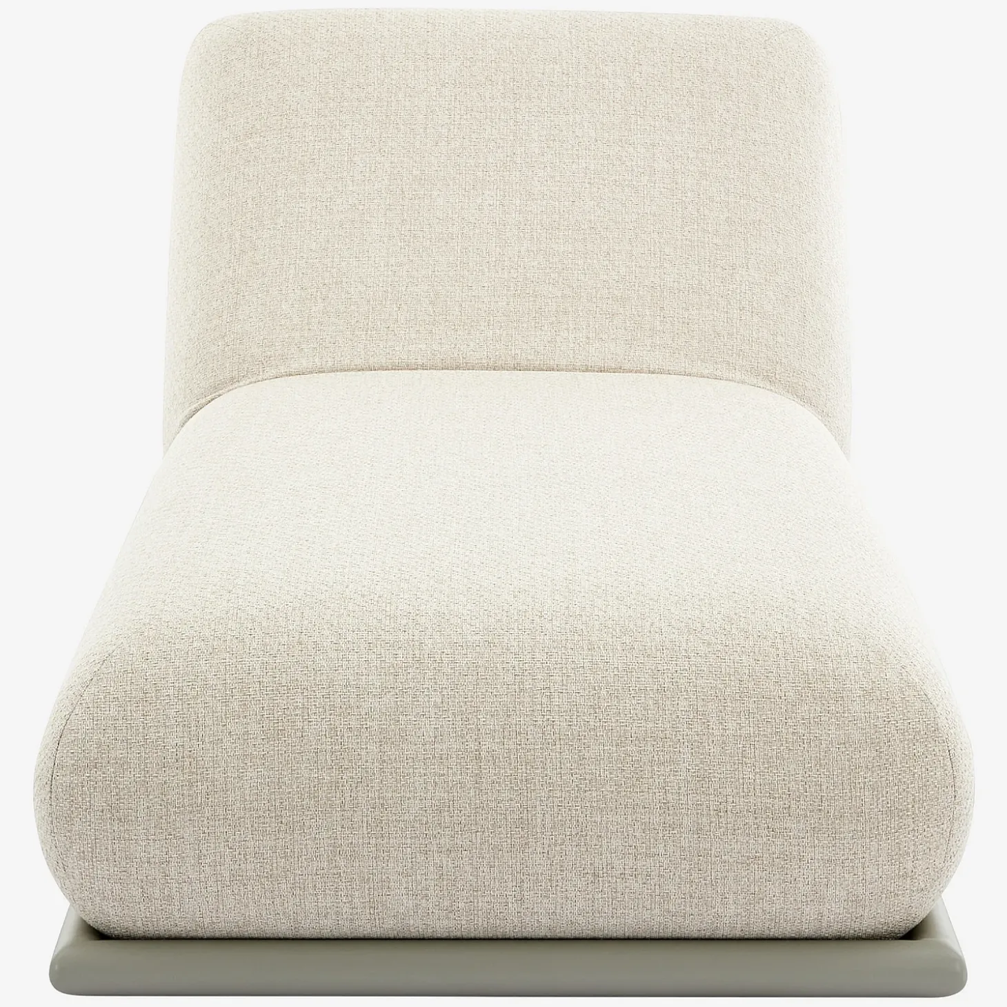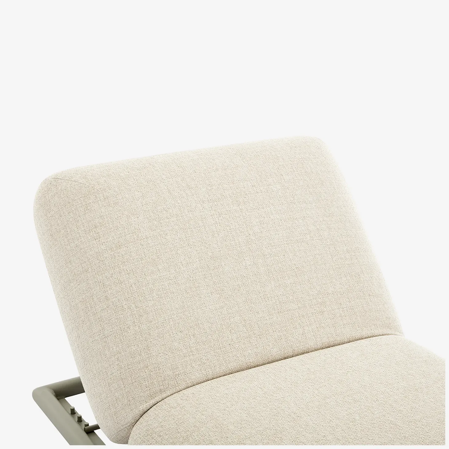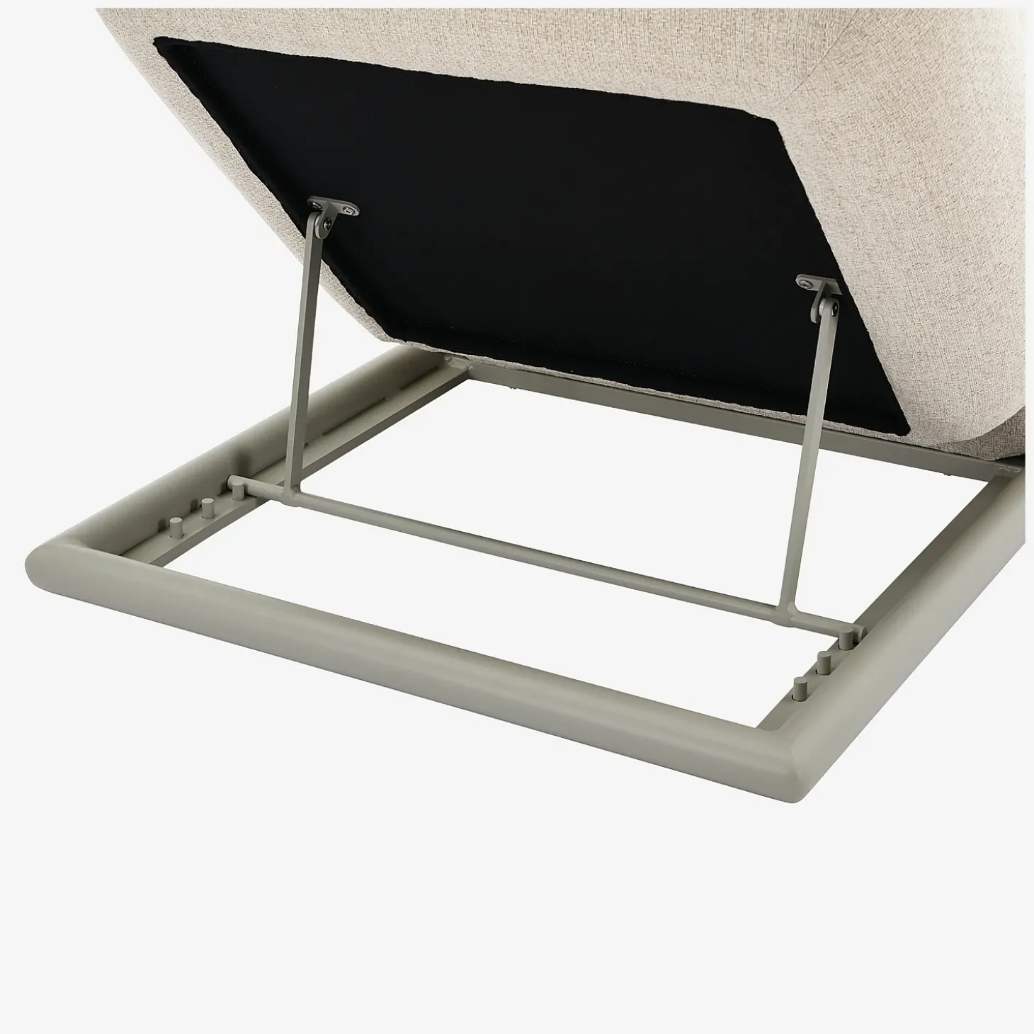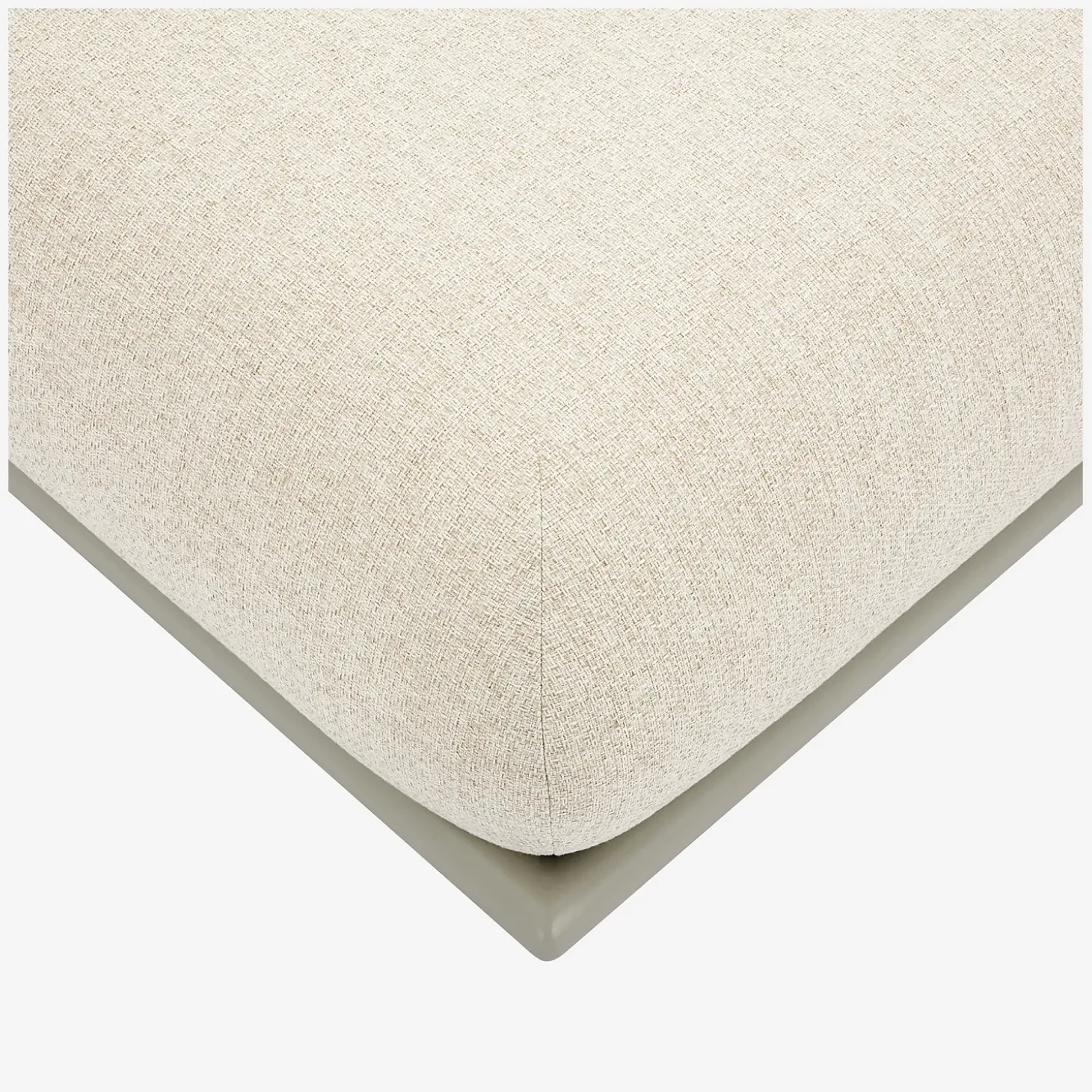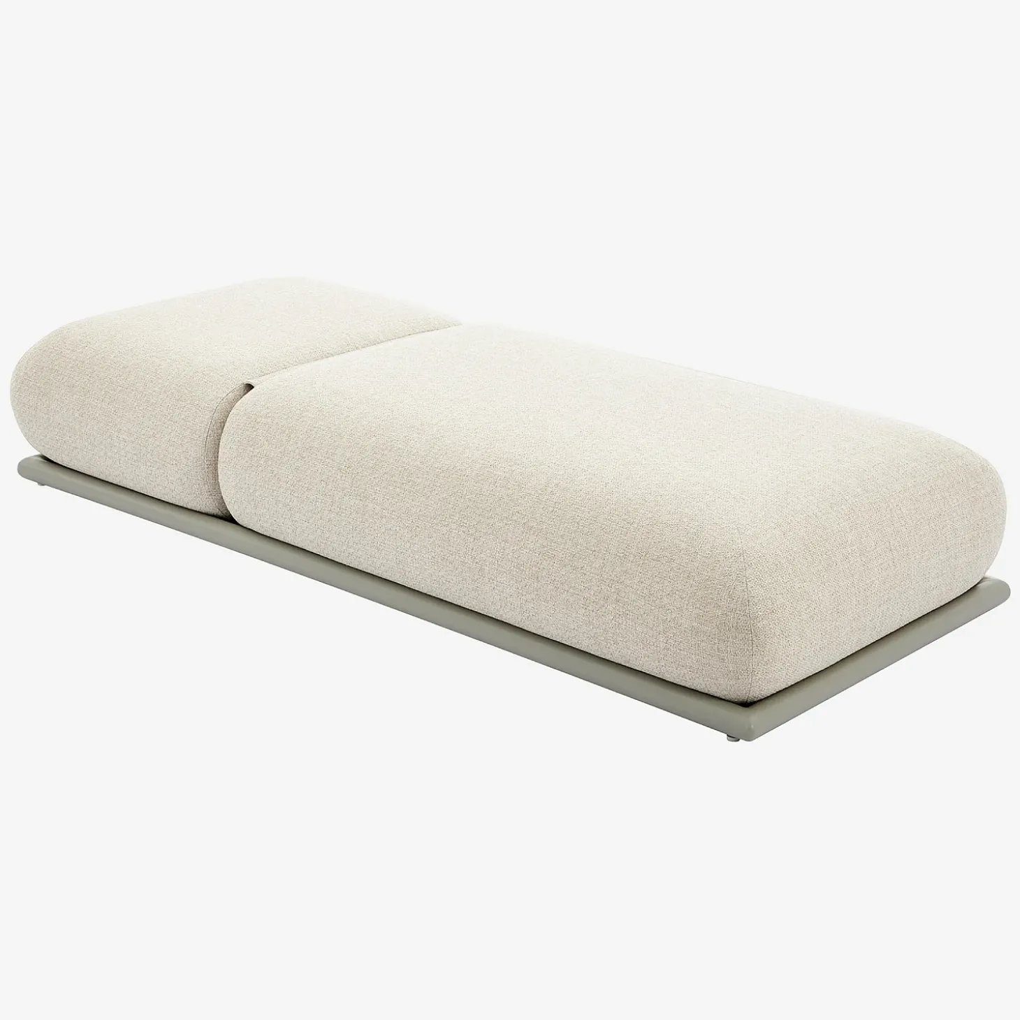 Sa structure en aluminium est légère, ne rouille pas, et souligne à merveille son matelas épais. Décliné en crème, il insuffle un univers doux et apaisant.