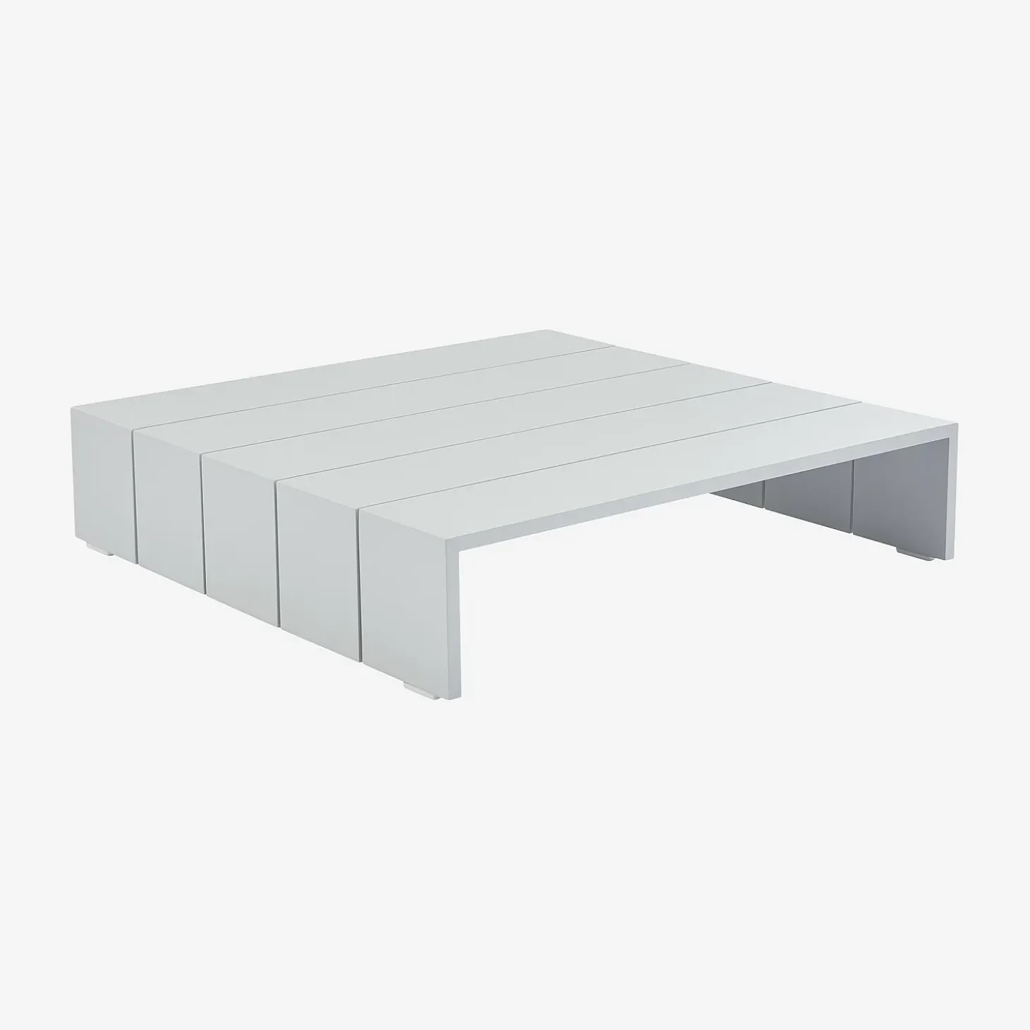 Inspiré des palettes de bois, le design carré de la table basse d’extérieur Imarui revisite l’esthétique industrielle dans une version épurée tout en aluminium.