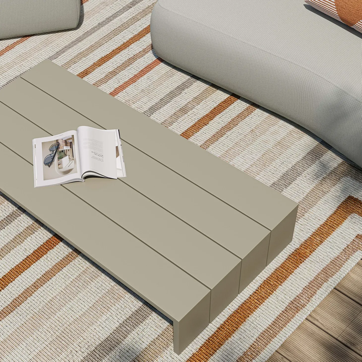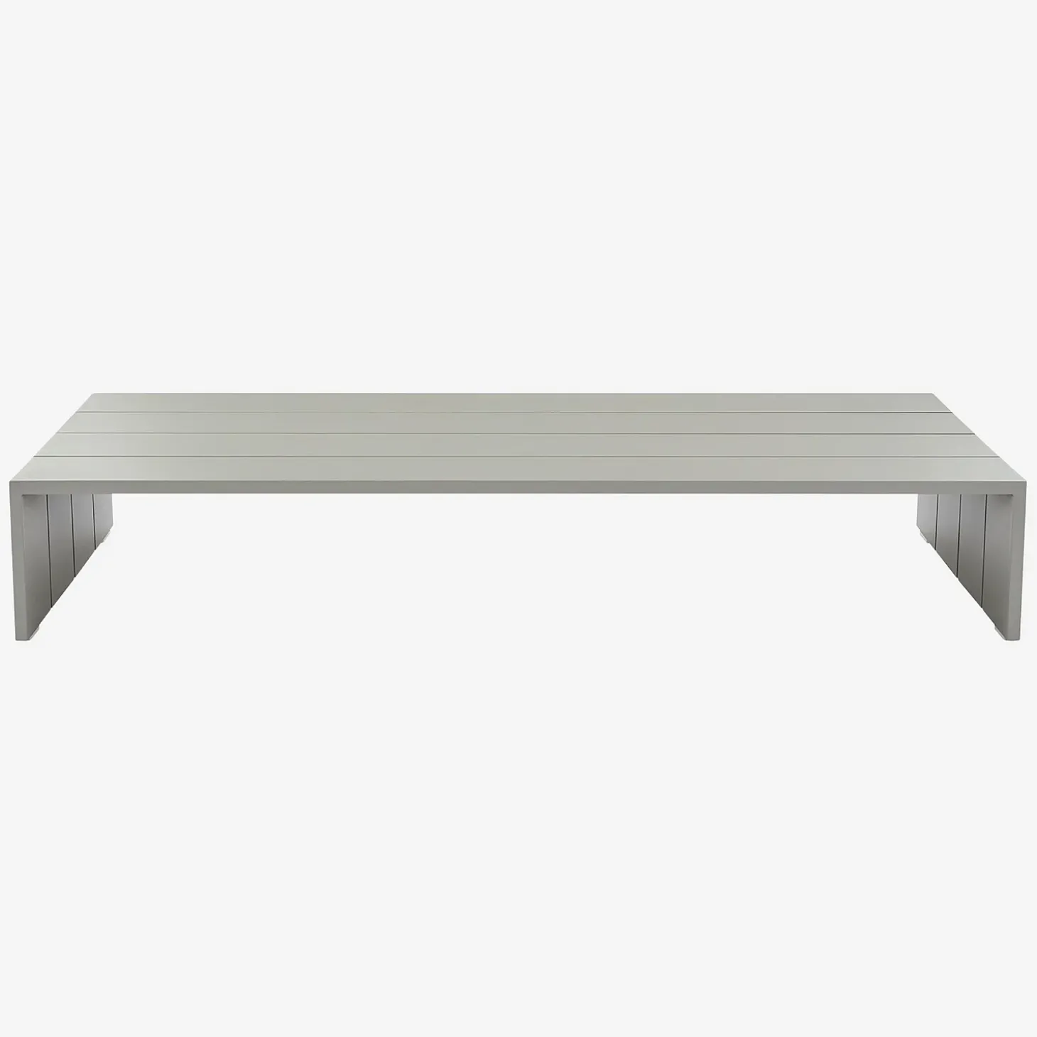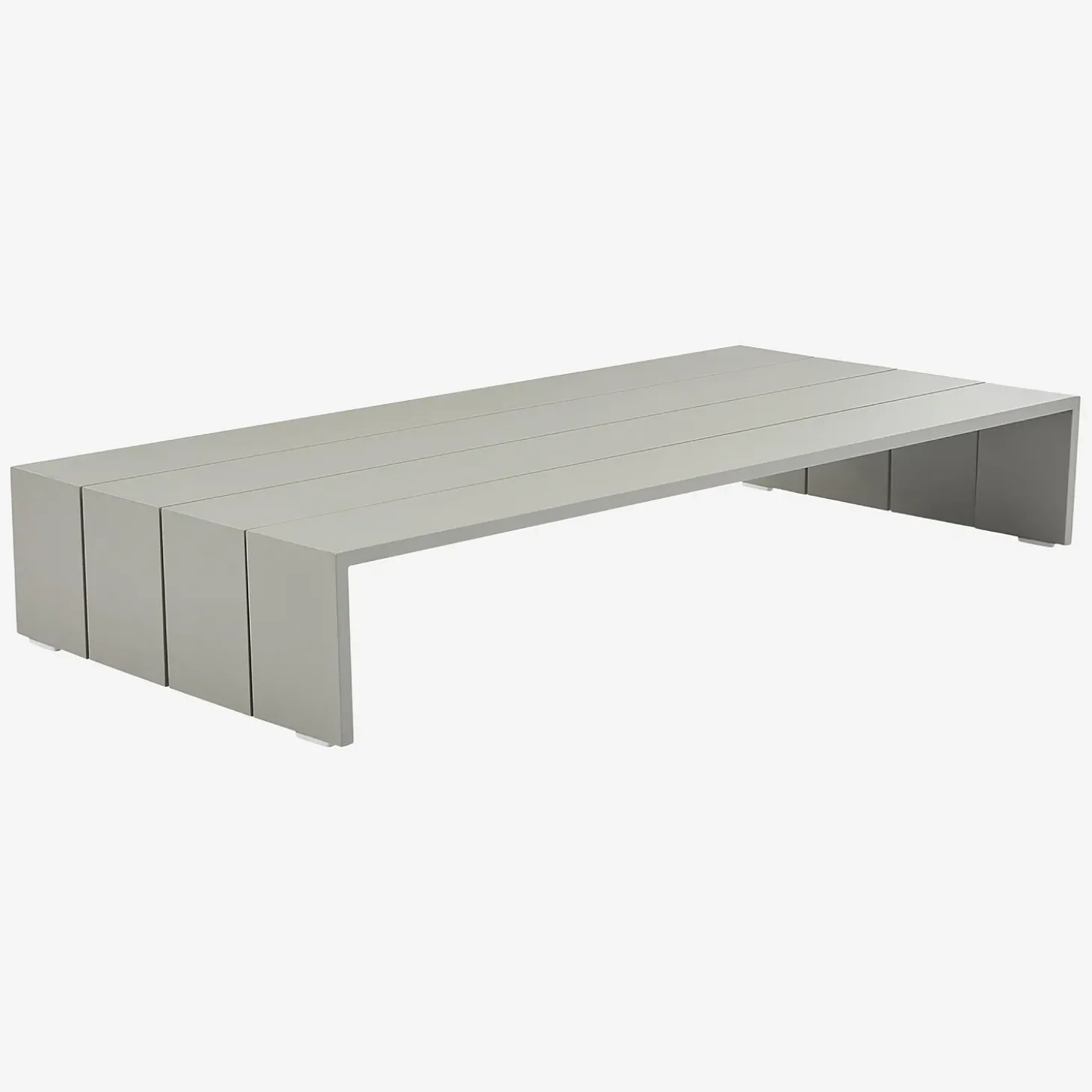 Inspiré des palettes de bois, le design rectangulaire de la table basse d’extérieur Imarui revisite l’esthétique industrielle dans une version épurée tout en aluminium.