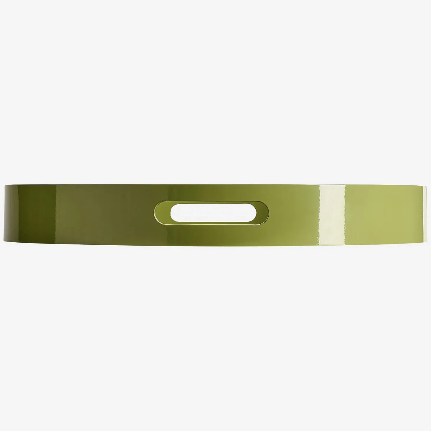 En panneau de fibres à densité moyenne (MDF) laquéAvec sa teinte vive et sa finition brillante, le plateau rond Jacob en bois laqué vert apporte une touche pop et pratique à vos moments de service.