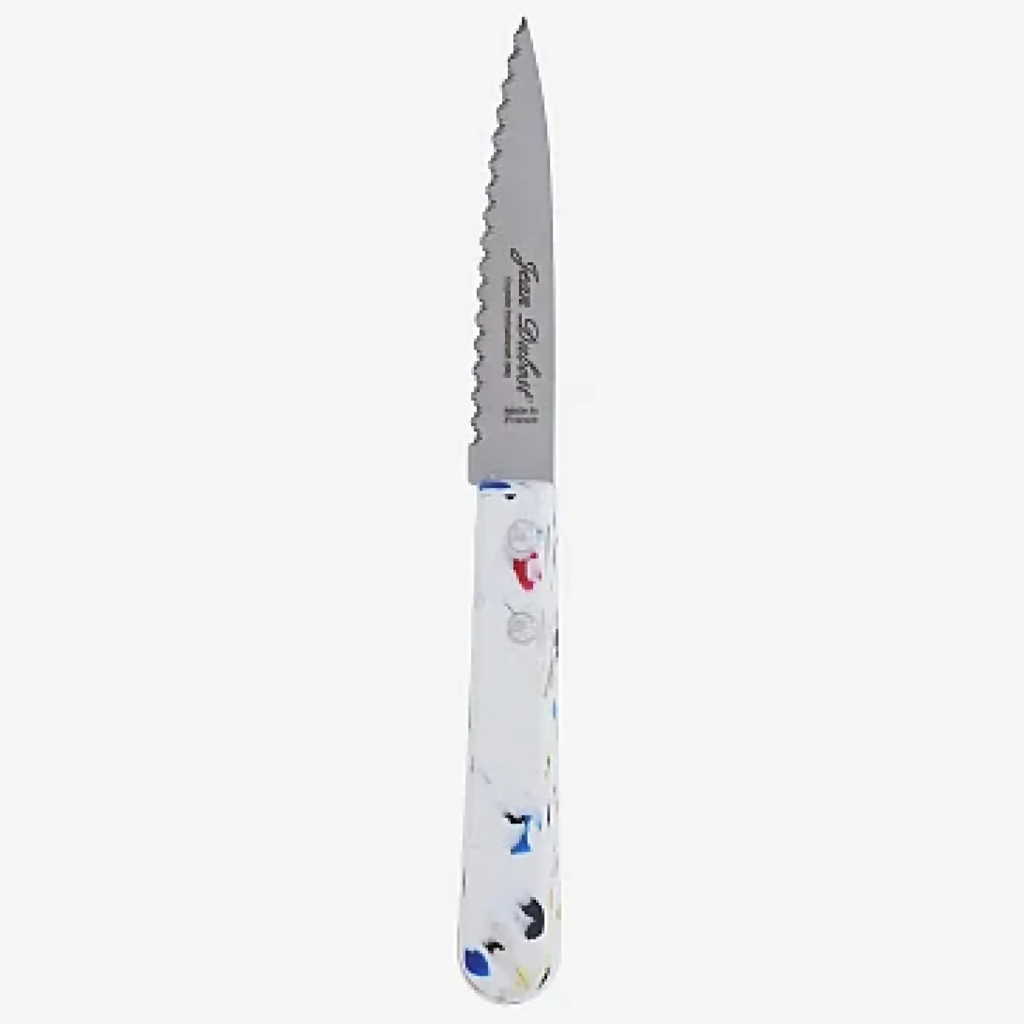 Le couteau à légumes Jean Dubost de la gamme Sense possède une lame en acier inoxydable de 9 cm. Son manche blanc, décoré de taches colorés, utilise des matériaux recyclés issus de la collecte française de déchets en plastique afin de s’inscrire dans une économie circulaire.