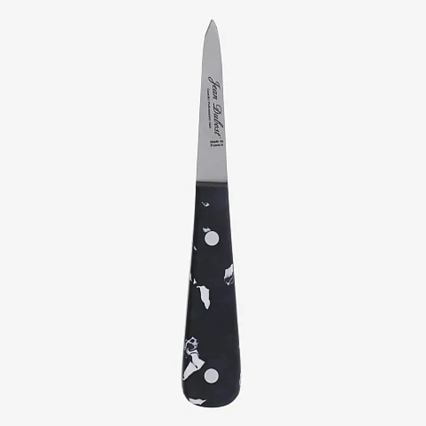 Le couteau à huître Jean Dubost de la gamme Sense possède une lame en acier inoxydable. Son manche noir utilise des matériaux recyclés issus de la collecte française de déchets en plastique afin de s’inscrire dans une économie circulaire.