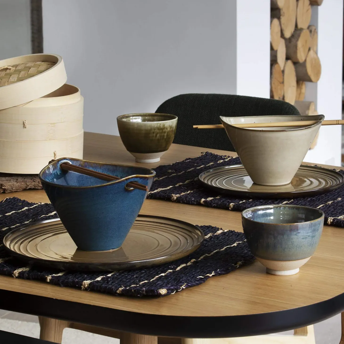 Ce classique Habitat est ici revisité en grès dans un émail réactif. Ce bol de nouille Jersey est accompagné d’une paire de baguettes en bambou. Celles-ci se glissent astucieusement à travers ce bol. De couleur marron, il mesure un peu plus de 8 cm de diamètre pour 11 cm de hauteur. Il accompagne aussi bien la vaisselle <dynamiclink target=