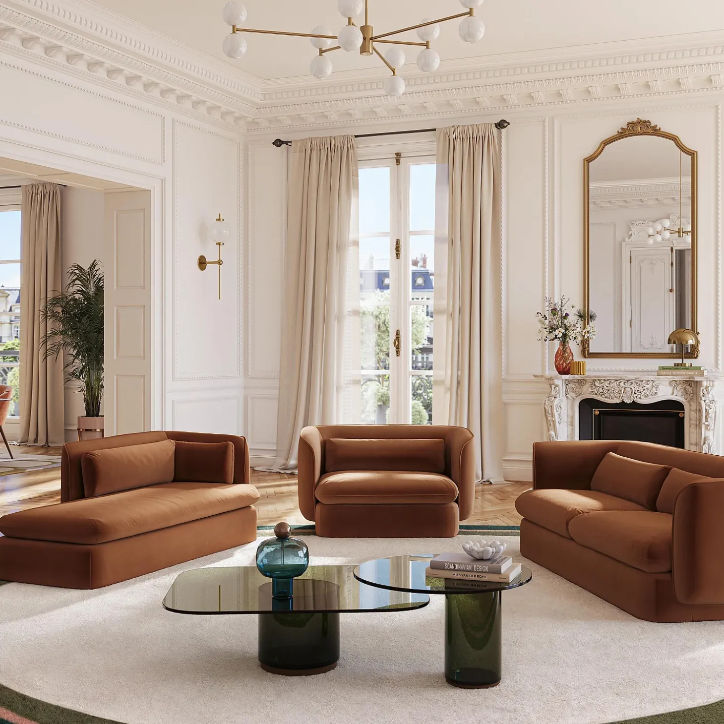 La teinte terracotta, chaleureuse et profonde, réchauffe l’espace et affirme un style contemporain.