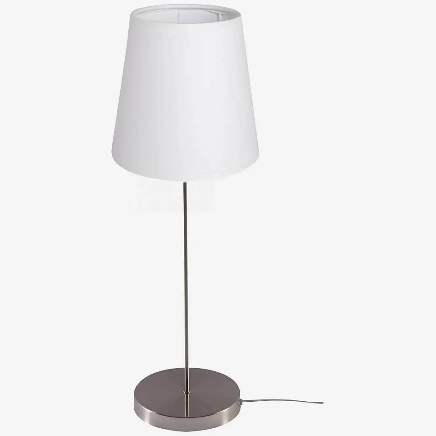 L’abat-jour fuselé Kap en coton blanc mesure 14 cm de haut. Il habille élégamment une lampe à poser.