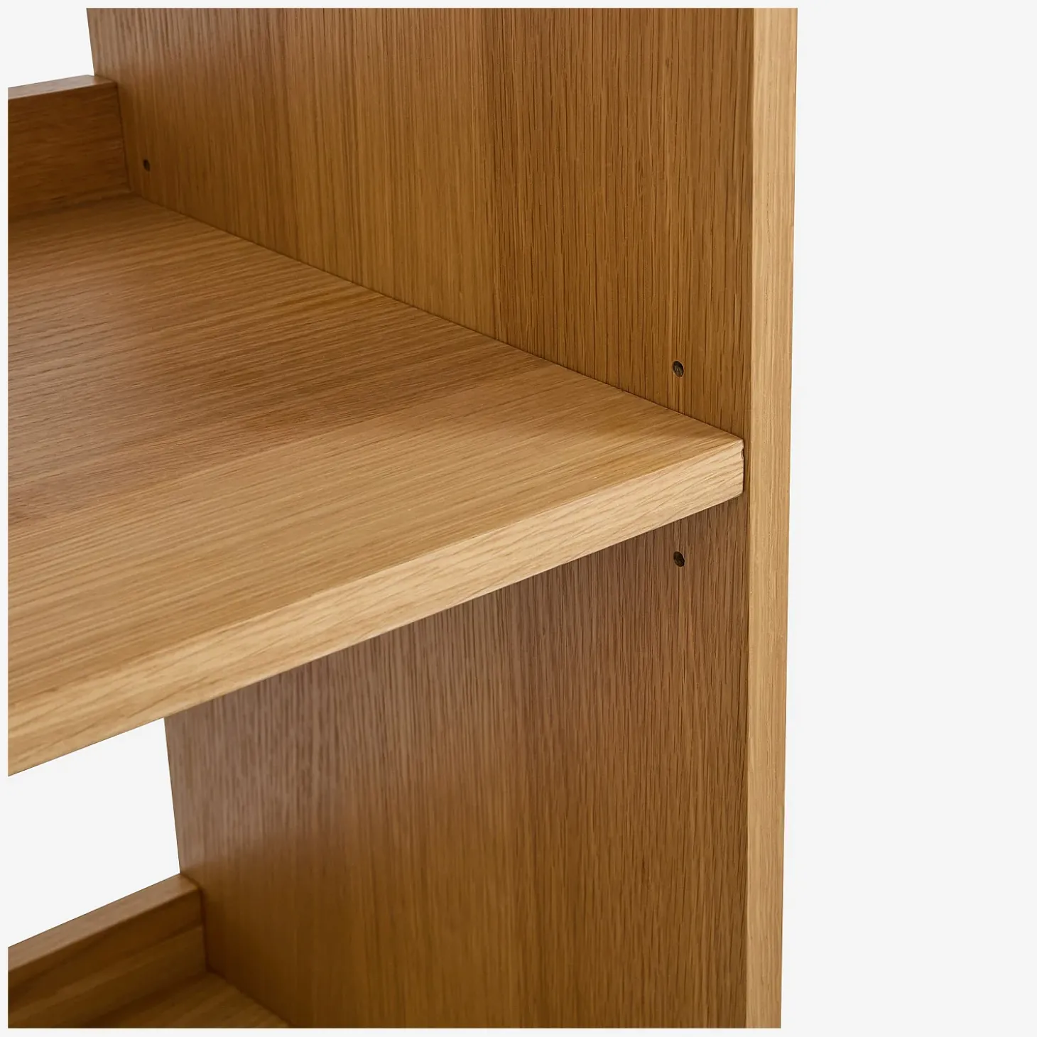 Cette élégante bibliothèque Kuda mesure 186 cm de hauteur et 60 cm de largeur. Elle dispose de 4 étagères. Les parties ouvertes sont terminées par des butoirs, pour empêcher vos livres ou vos objets de décoration de tomber.