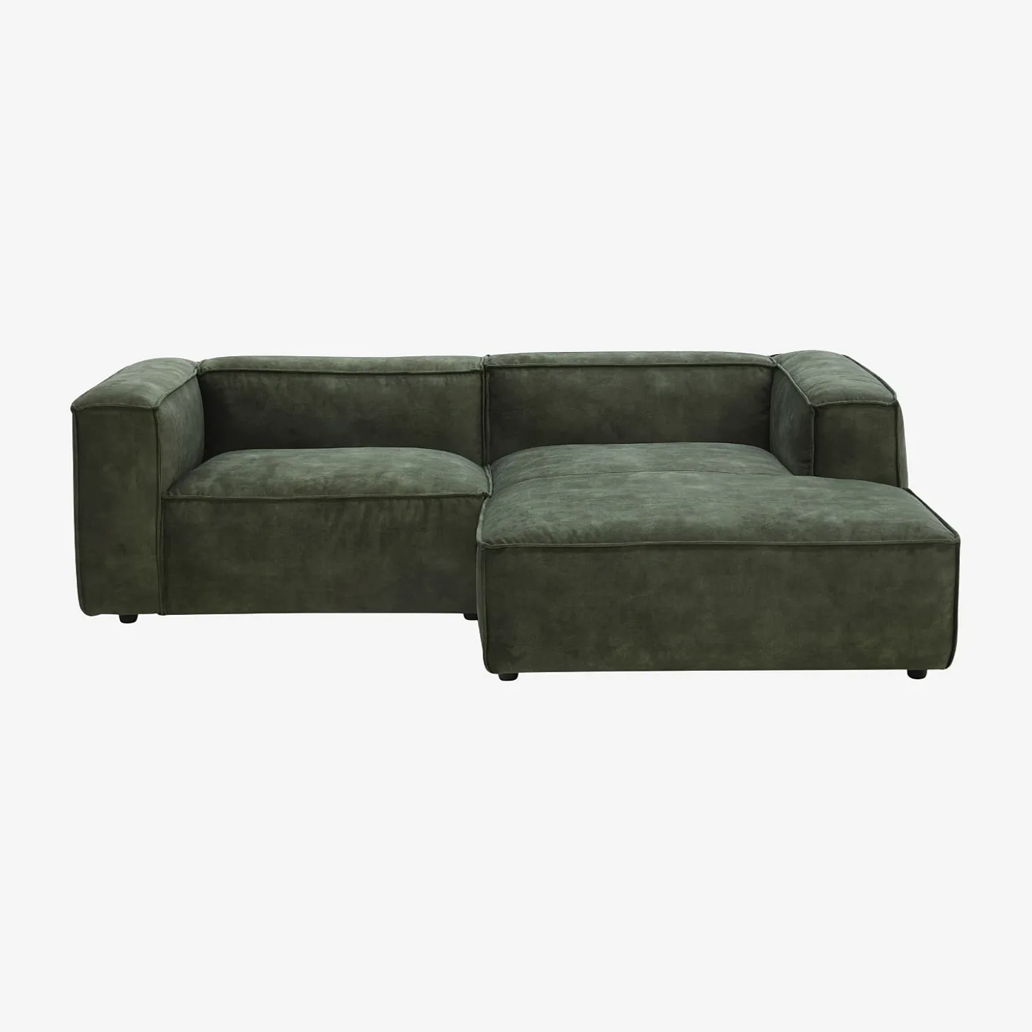 Le canapé d’angle droit Kuti optimise l’espace et structure le salon avec allure. Sa large méridienne placée à droite prolonge l’assise et complète la sensation de confort.