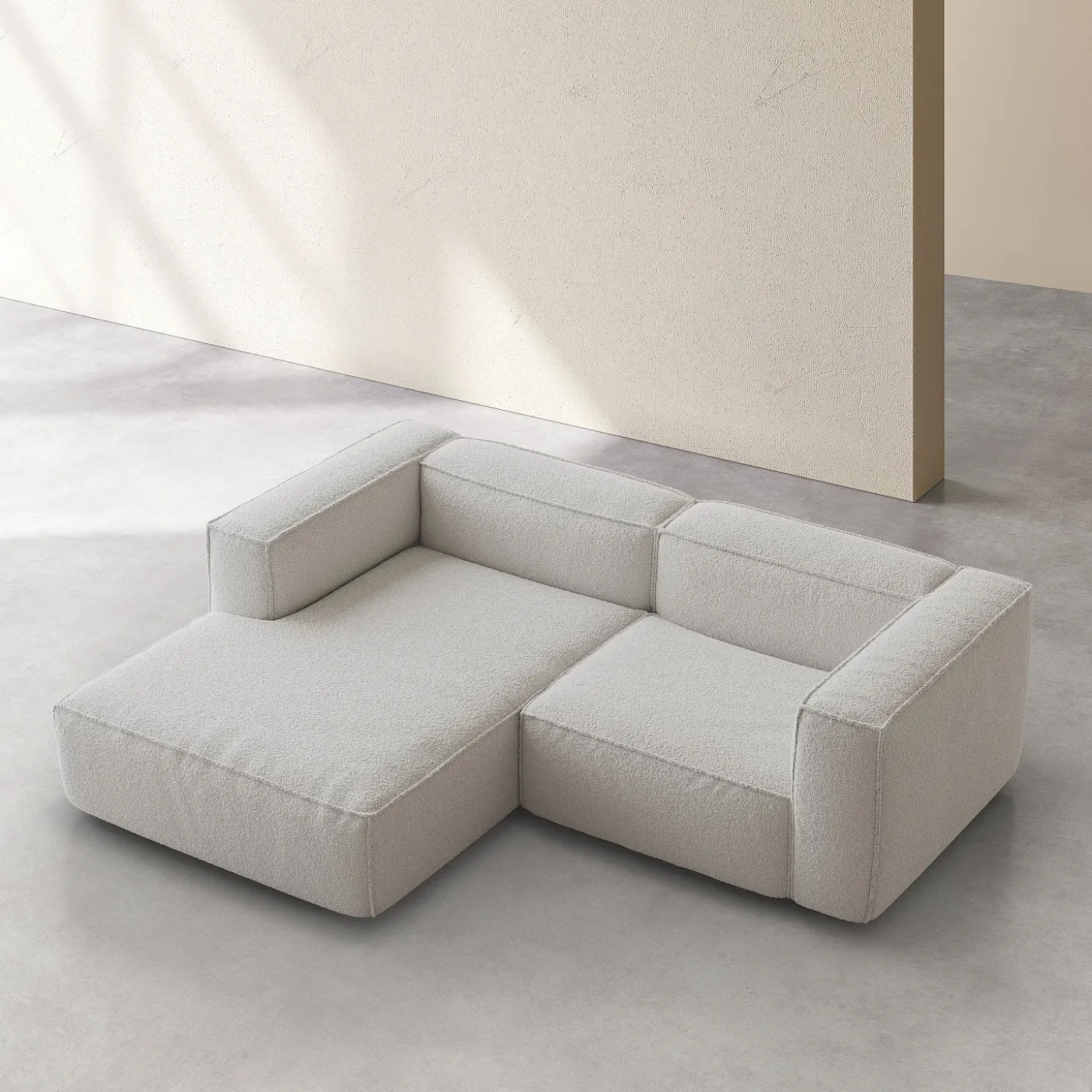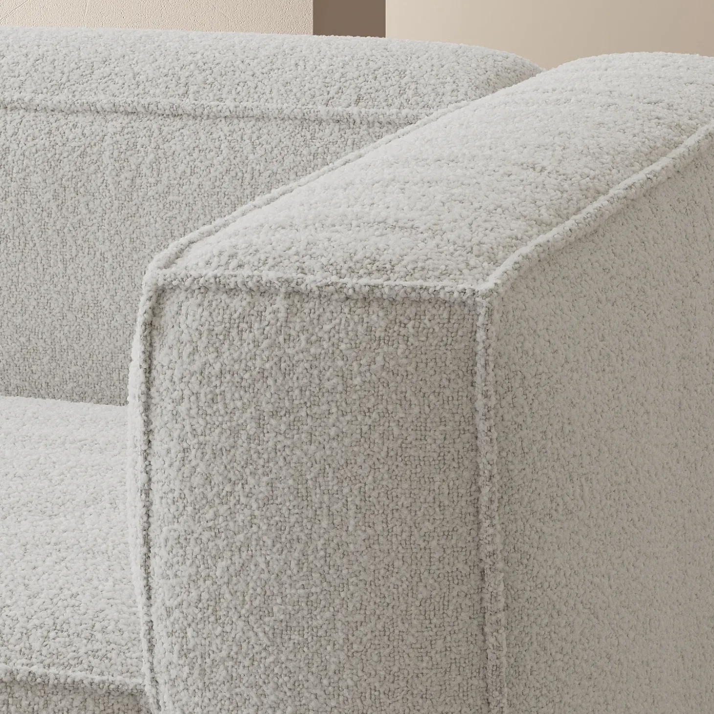 Son revêtement en bouclette texturée révèle un beau jeu de matière, tandis que le beige mélangé donne de la profondeur à une teinte naturellement lumineuse.