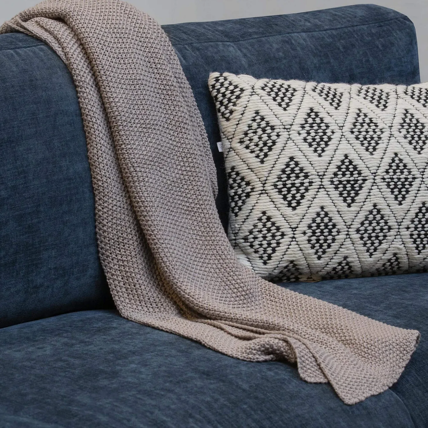 **Fabriqué en Inde**Lou enveloppe le quotidien de douceur avec un plaid tricoté en coton. Une création cocooning qui habille fauteuils et canapés tout en apportant chaleur et style.
