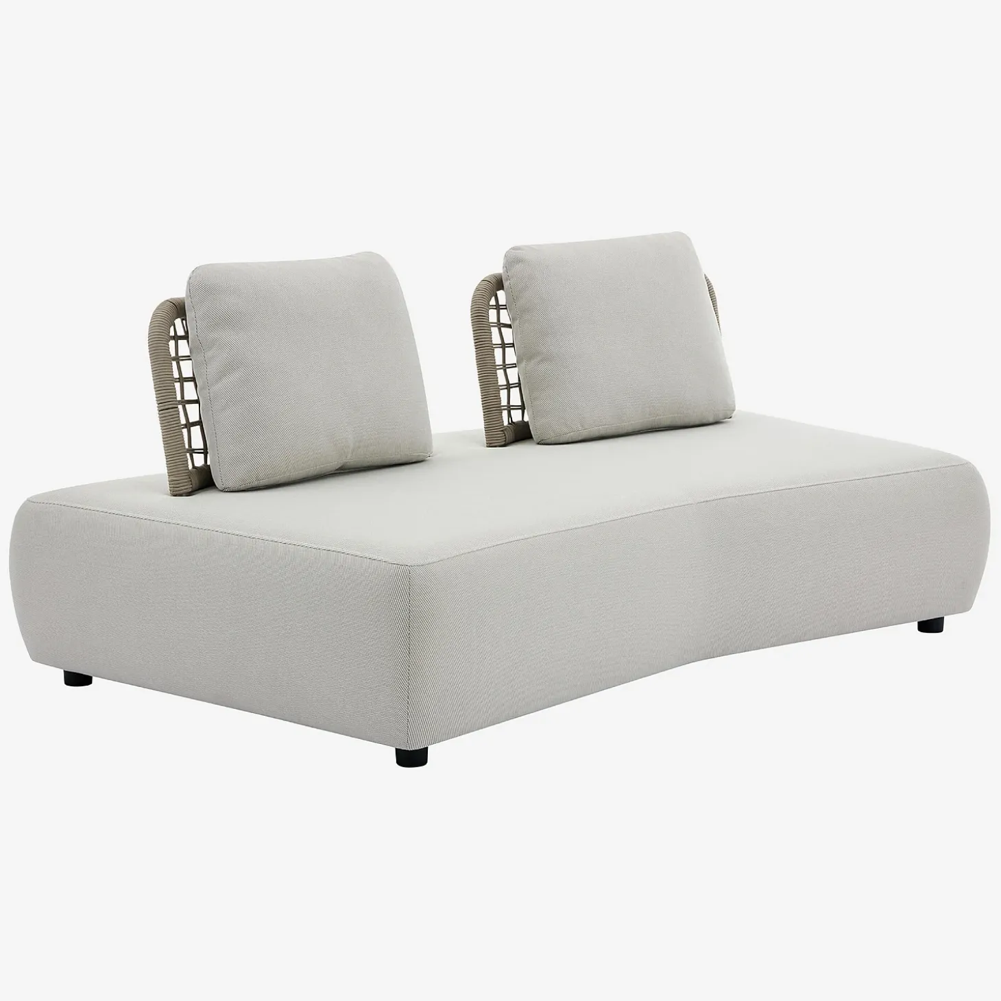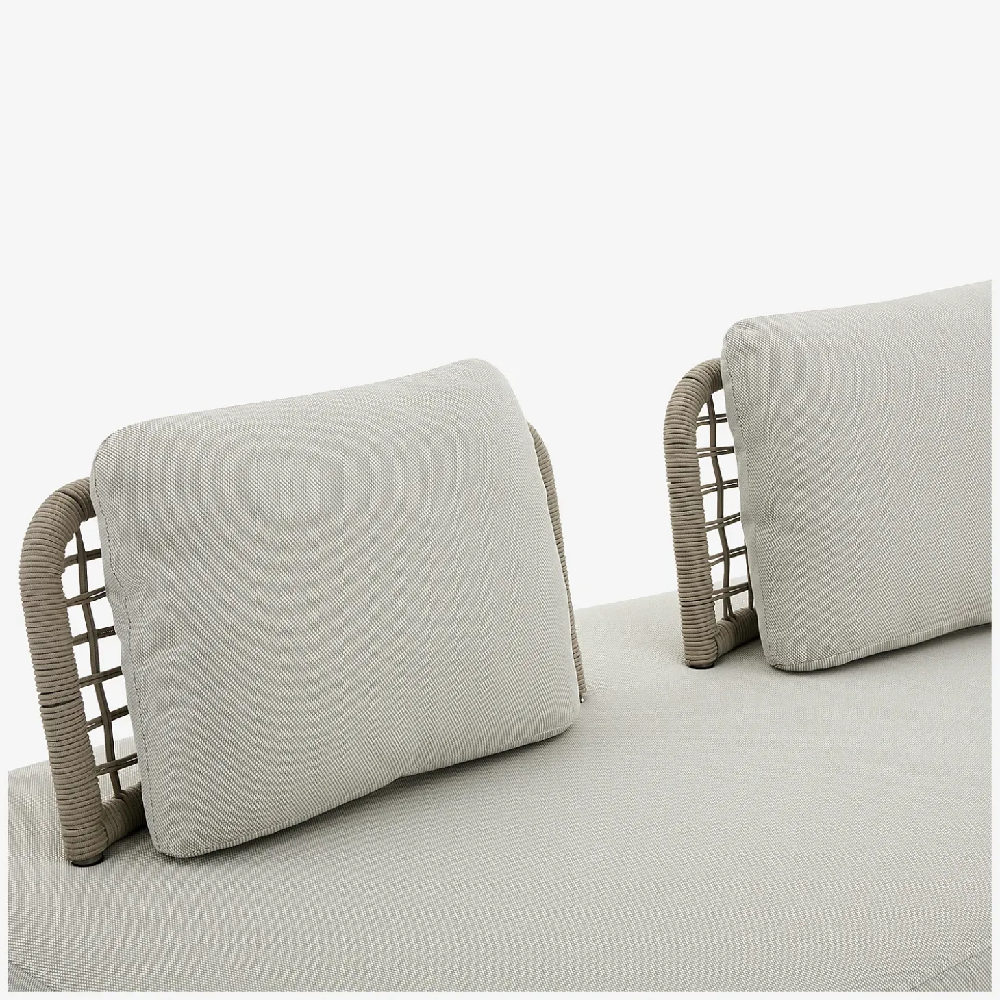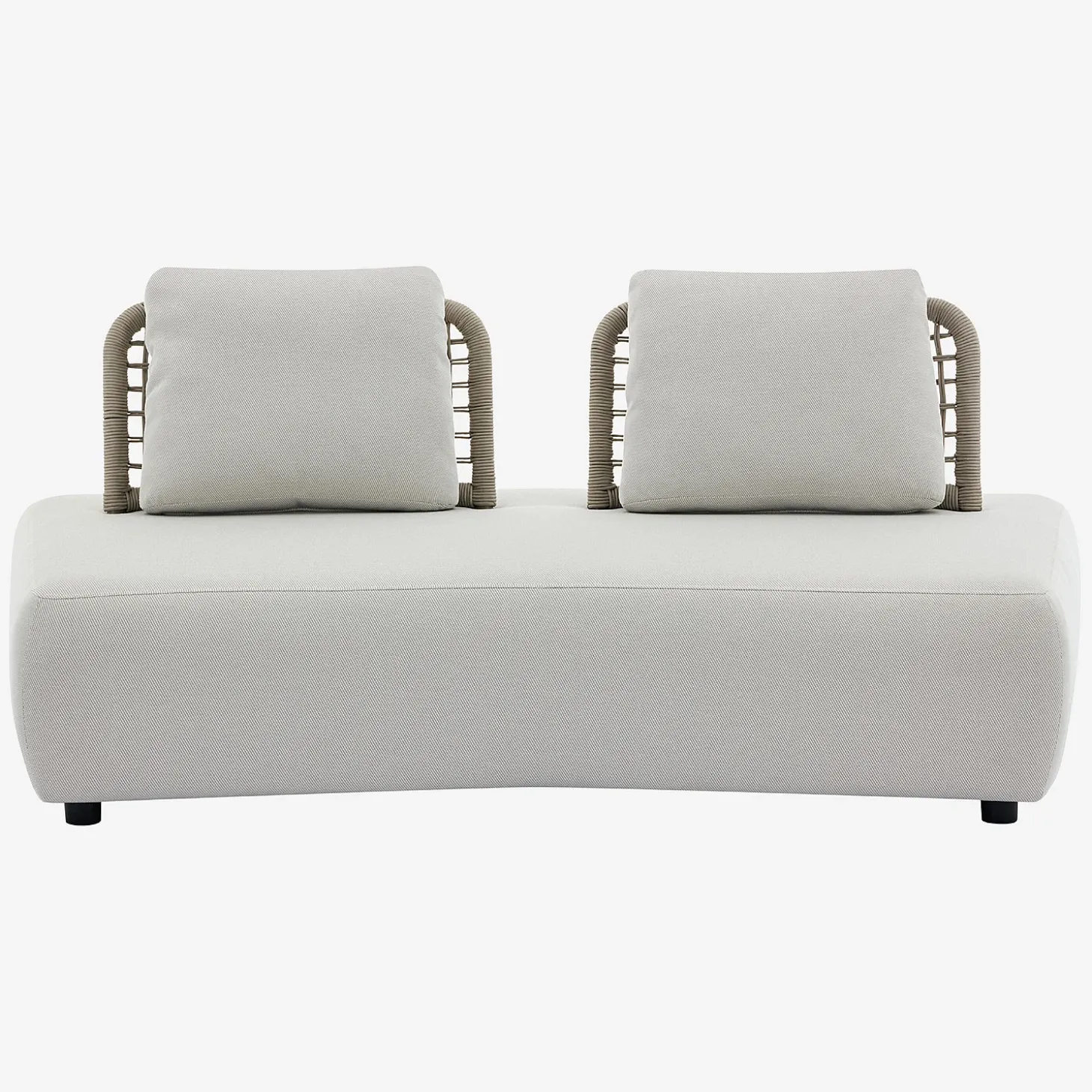 Le canapé d’extérieur 2 places Maraba propose une forme légèrement courbée pour une touche de design supplémentaire. Réhaussé d’une teinte beige muscade, il instaure une atmosphère à la fois chaleureuse et lumineuse.