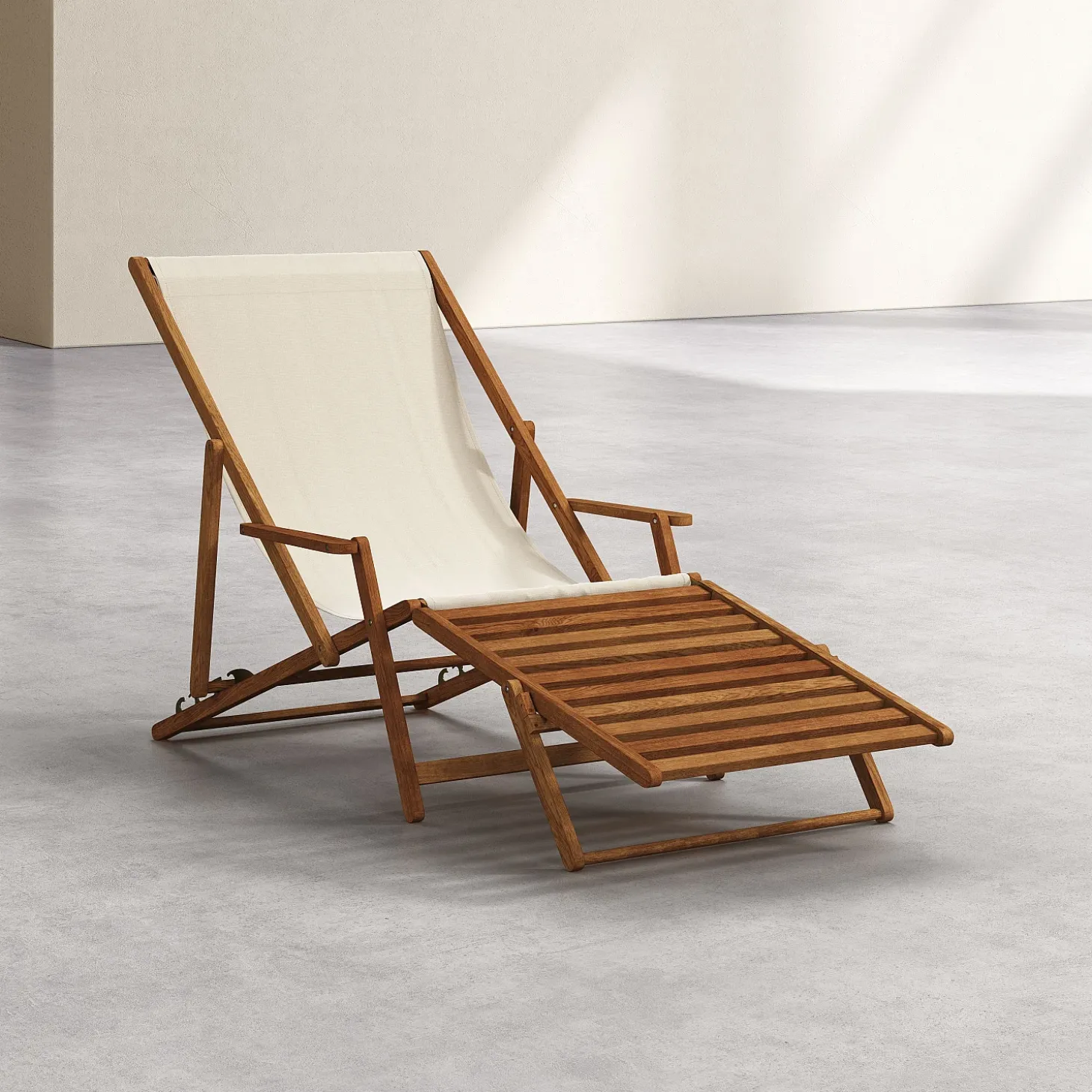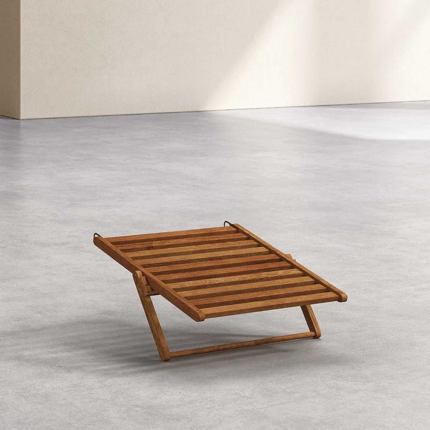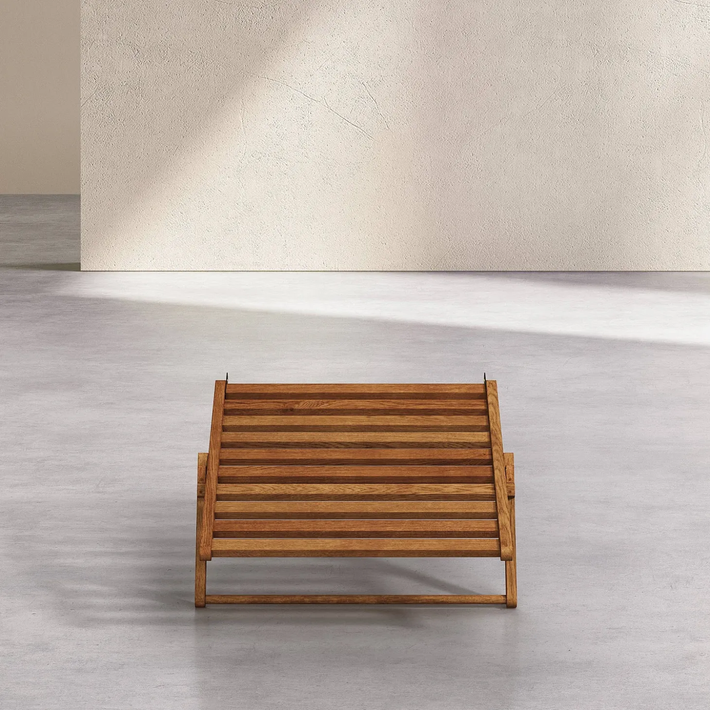 Conçu pour compléter la chilienne Maui, le repose-pieds en chêne invite à prolonger les instants de relaxation.