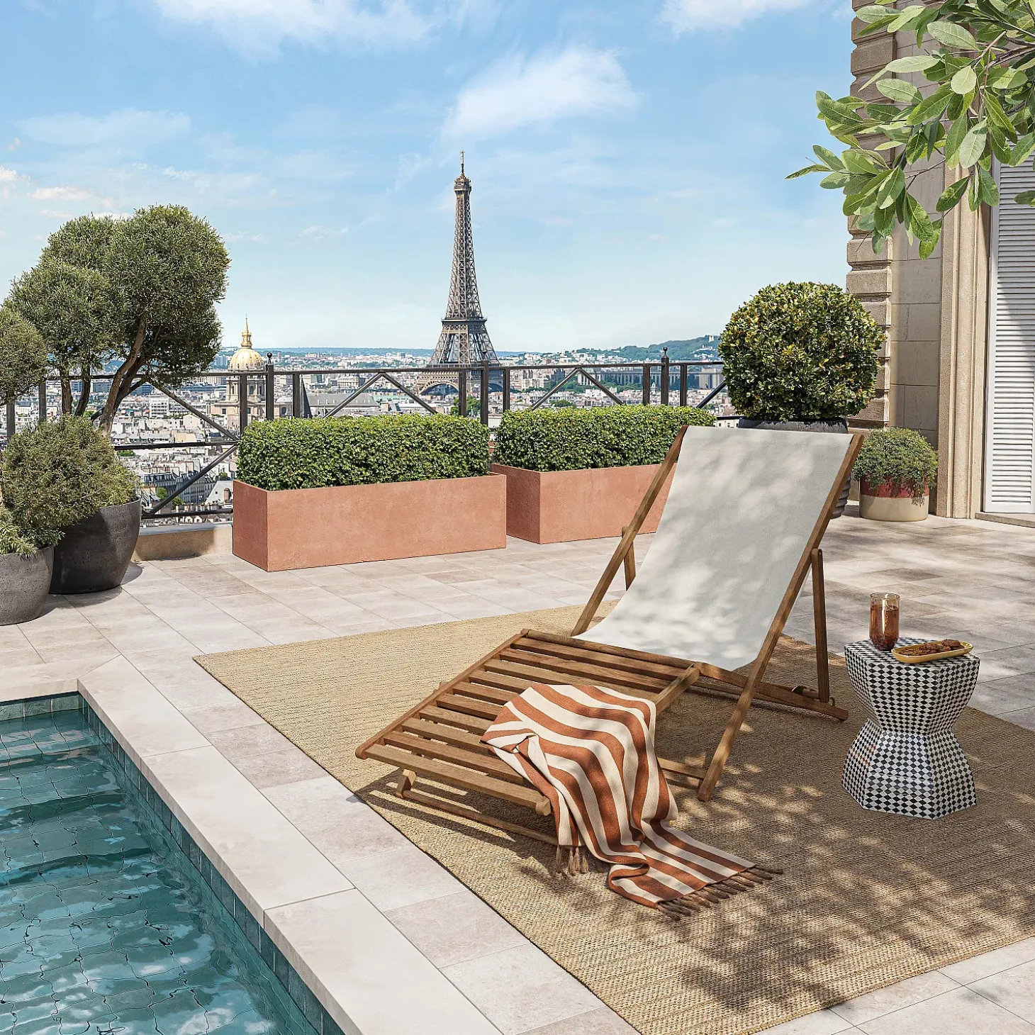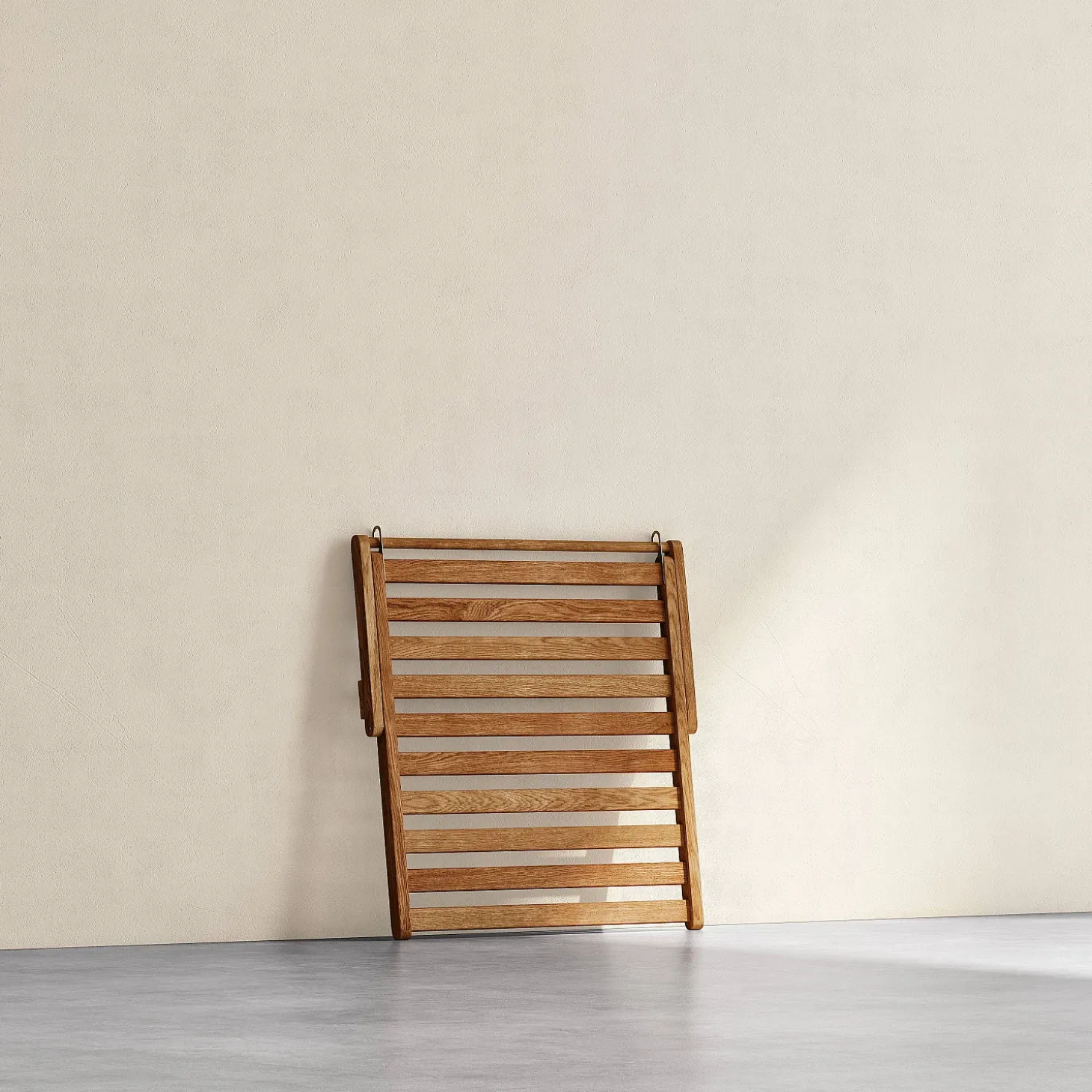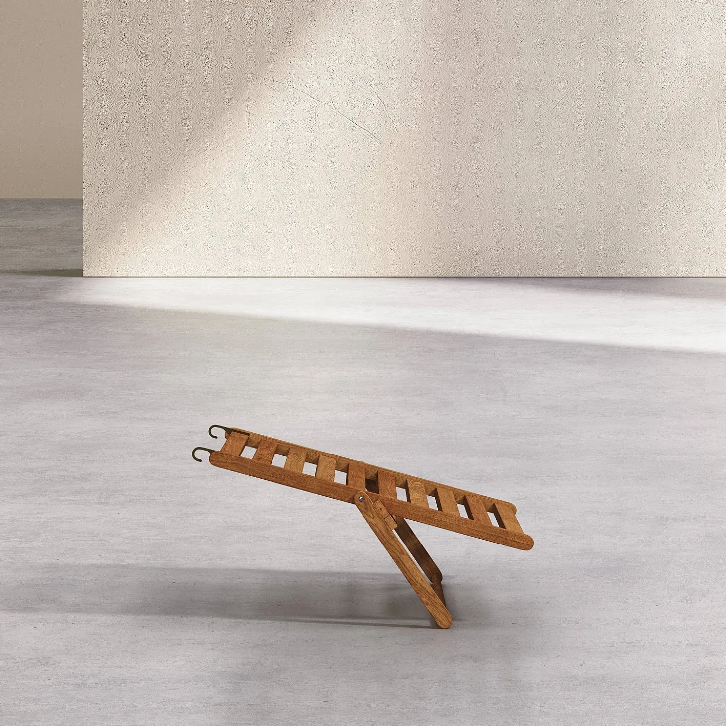 Conçu pour compléter la chilienne Maui, le repose-pieds en chêne invite à prolonger les instants de relaxation.