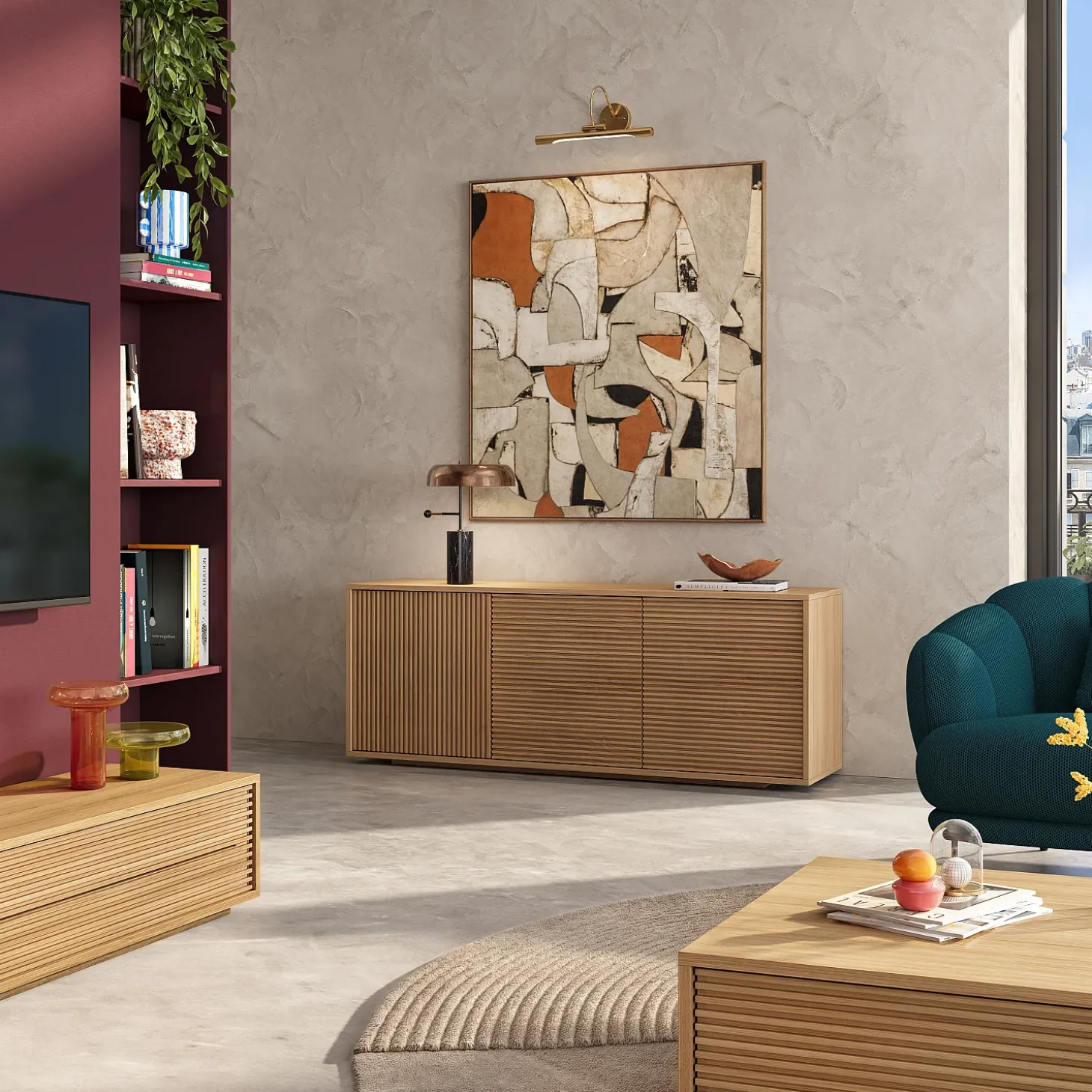 Le buffet bas 3 portes en chêne Max insuffle une atmoshère authentique dans le salon ou la salle à manger.