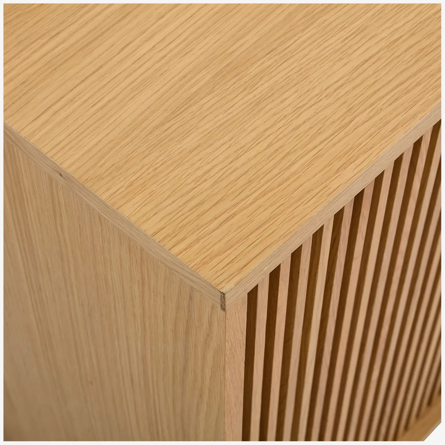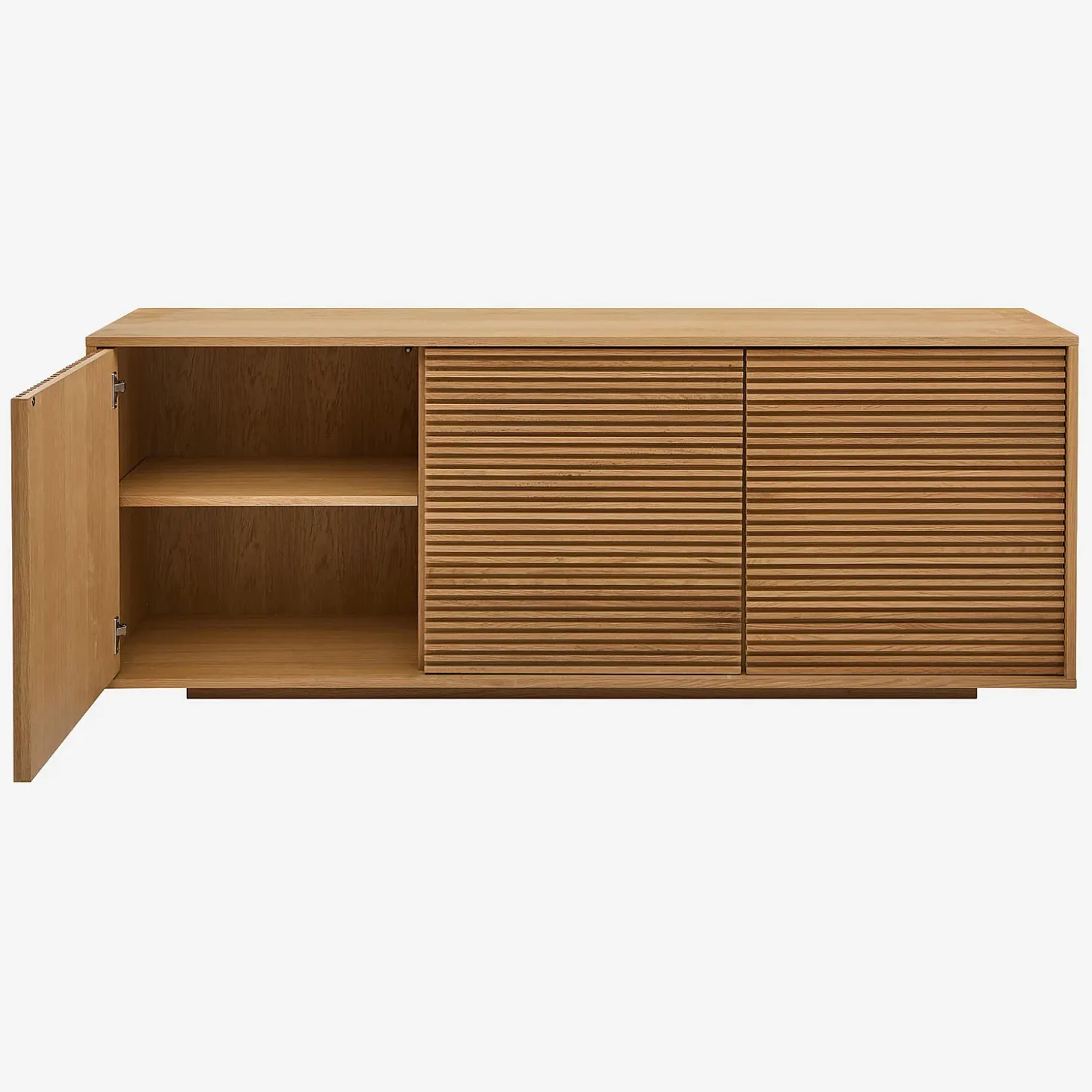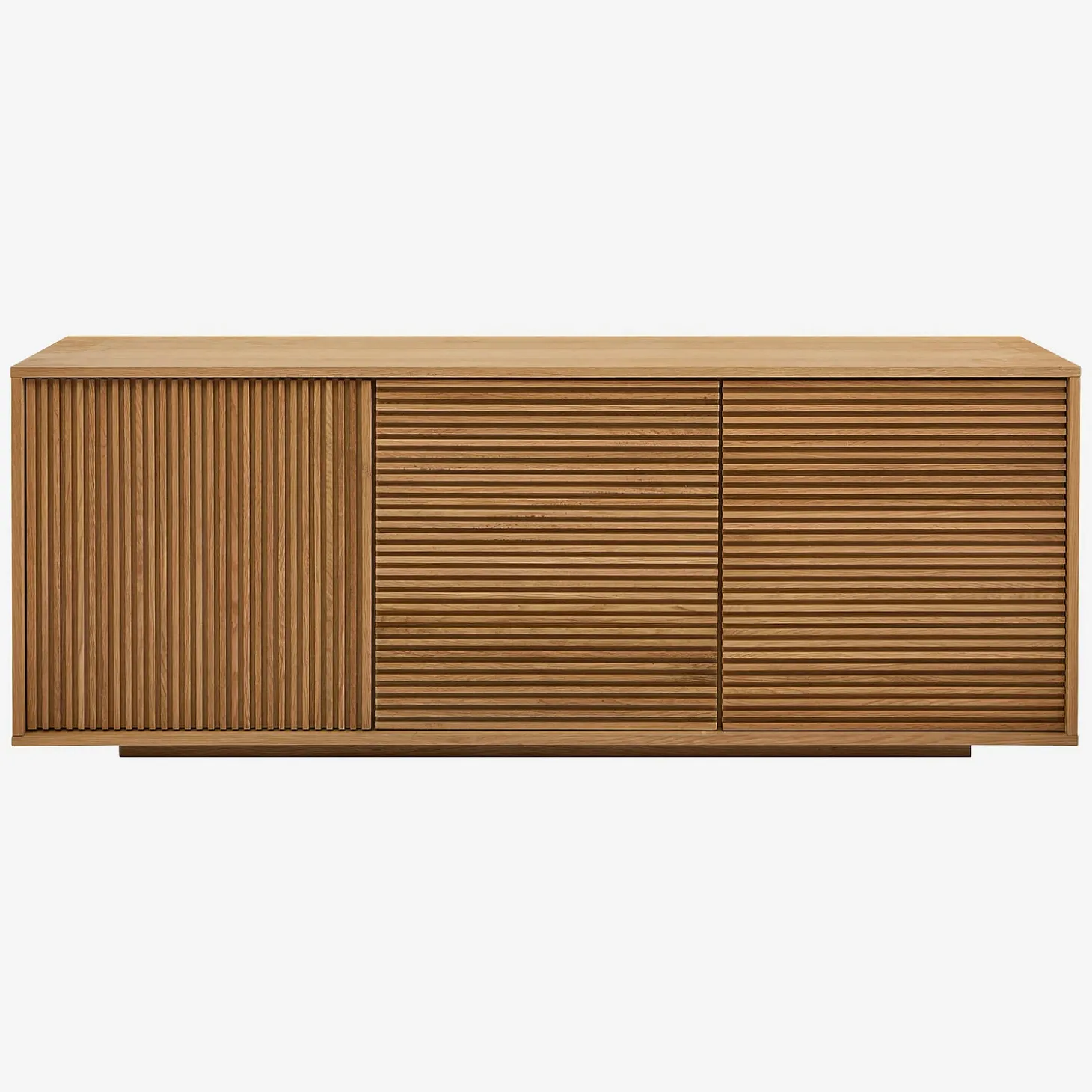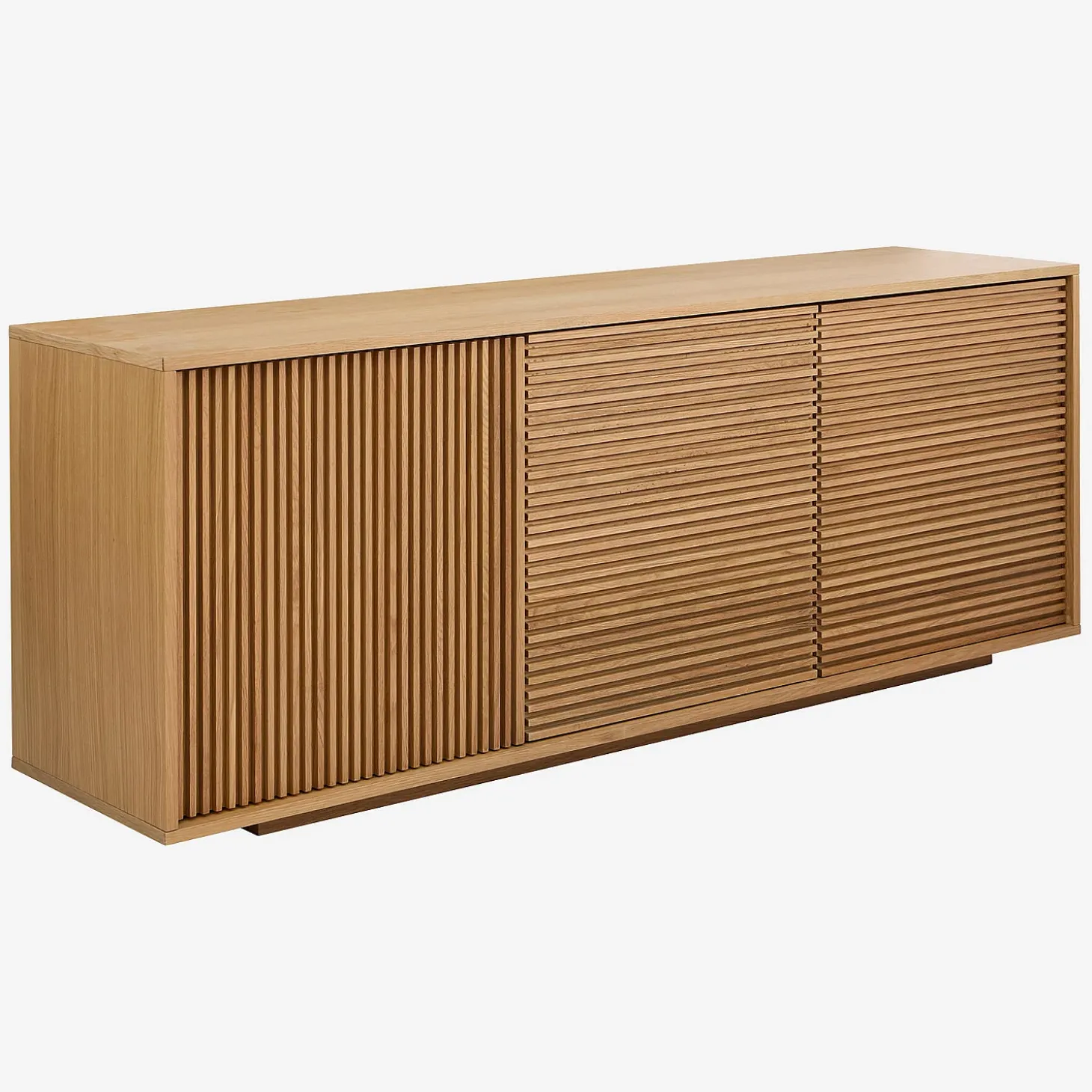 Charge maximale supportée par les étagères : 10 kgJeu de lattes, lignes épurées et ouverture push-pull définissent ce buffet en chêne au design moderne. Une pièce de caractère pensée pour conjuguer rangement et authenticité.