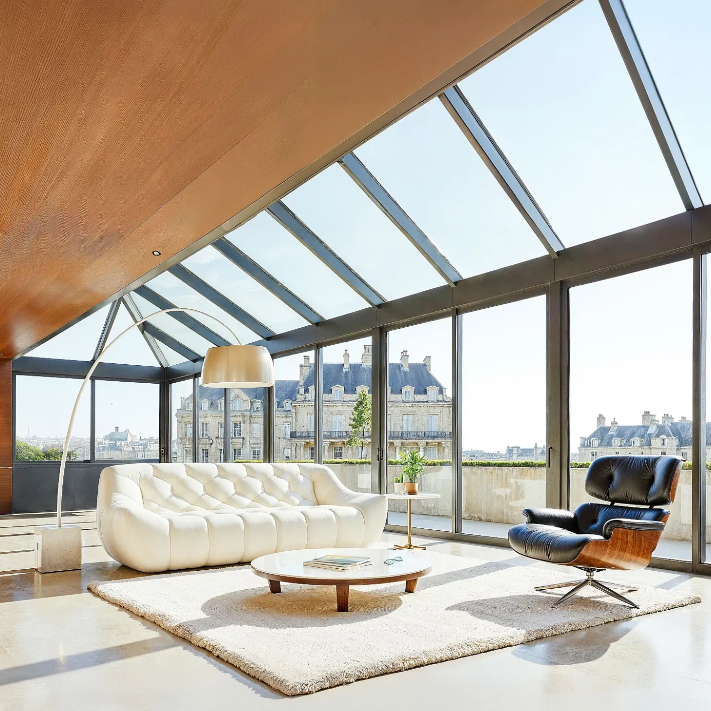 Sa teinte écrue, subtile et lumineuse, sublime les lignes contemporaines de cette création, tout en s’intégrant avec justesse dans un intérieur soigné et délicatement sophistiqué.