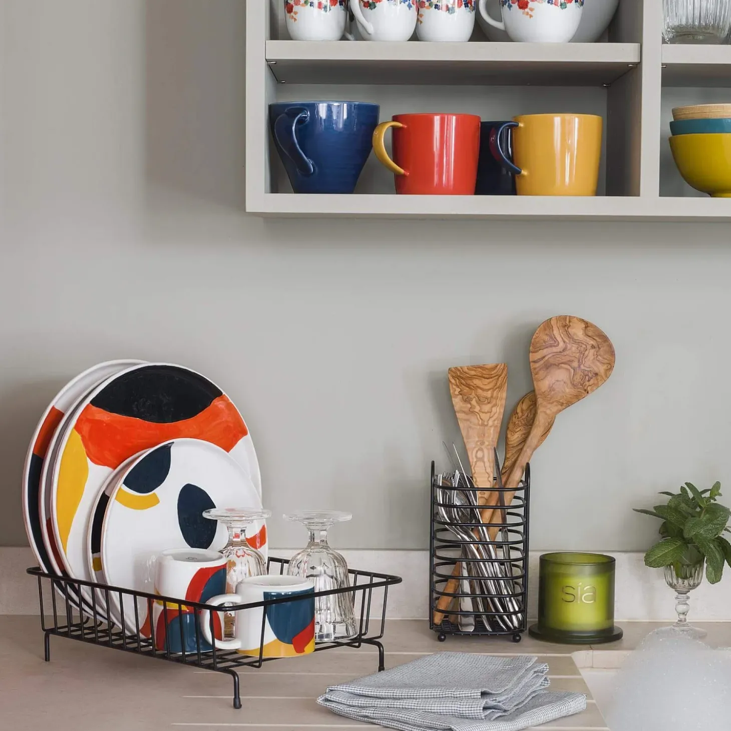 Le pot à ustensiles est très tendance en métal filaire. Rangez l’ensemble de vos ustensiles utiles pour vos préparations culinaires : fouets, cuillères, louches…