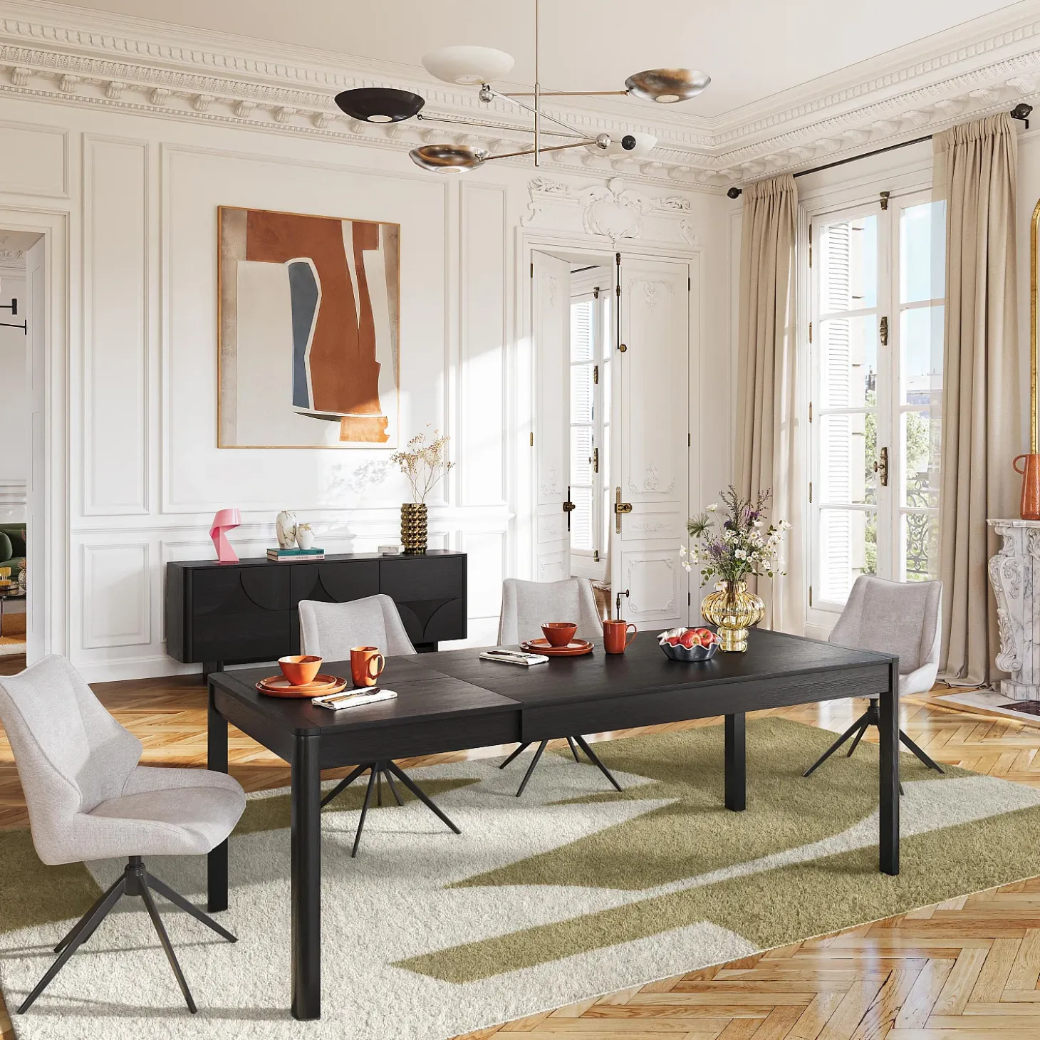 La table extensible Milord en frêne noir incarne l’élégance du bois dans une interprétation contemporaine. Son design sobre aux angles adoucis s’inscrit dans la continuité des lignes sculptées qui signent la collection. Grâce à son système de rallonge, elle s’étend facilement pour accueillir jusqu’à 8 convives.