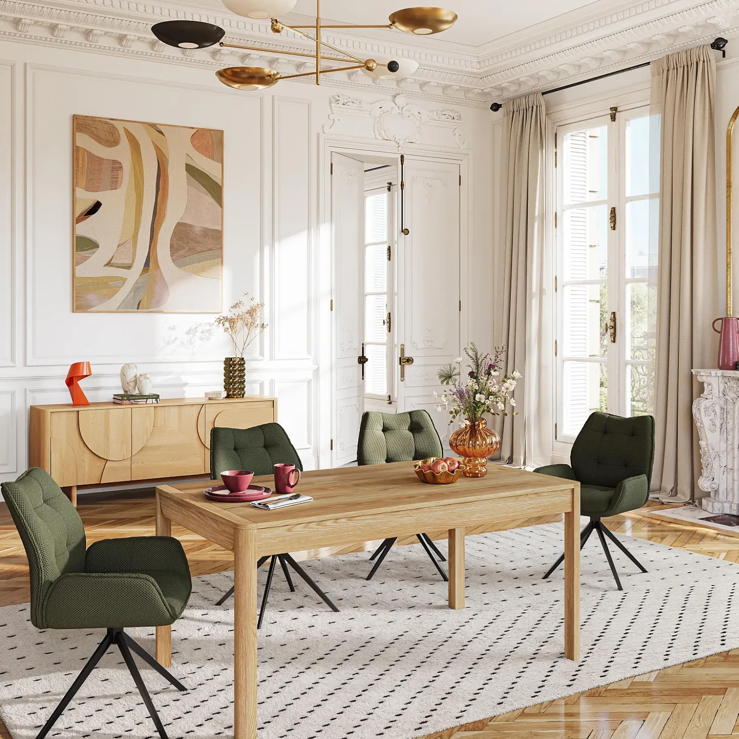 La table extensible Milord en chêne clair incarne l’élégance du bois dans une interprétation contemporaine. Son design sobre aux angles adoucis s’inscrit dans la continuité des lignes sculptées qui signent la collection. Grâce à son système de rallonge, elle s’étend facilement pour accueillir jusqu’à 8 convives.
