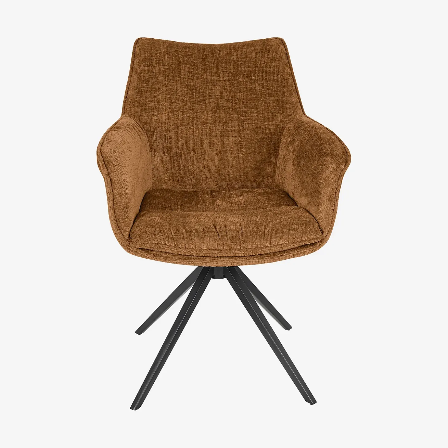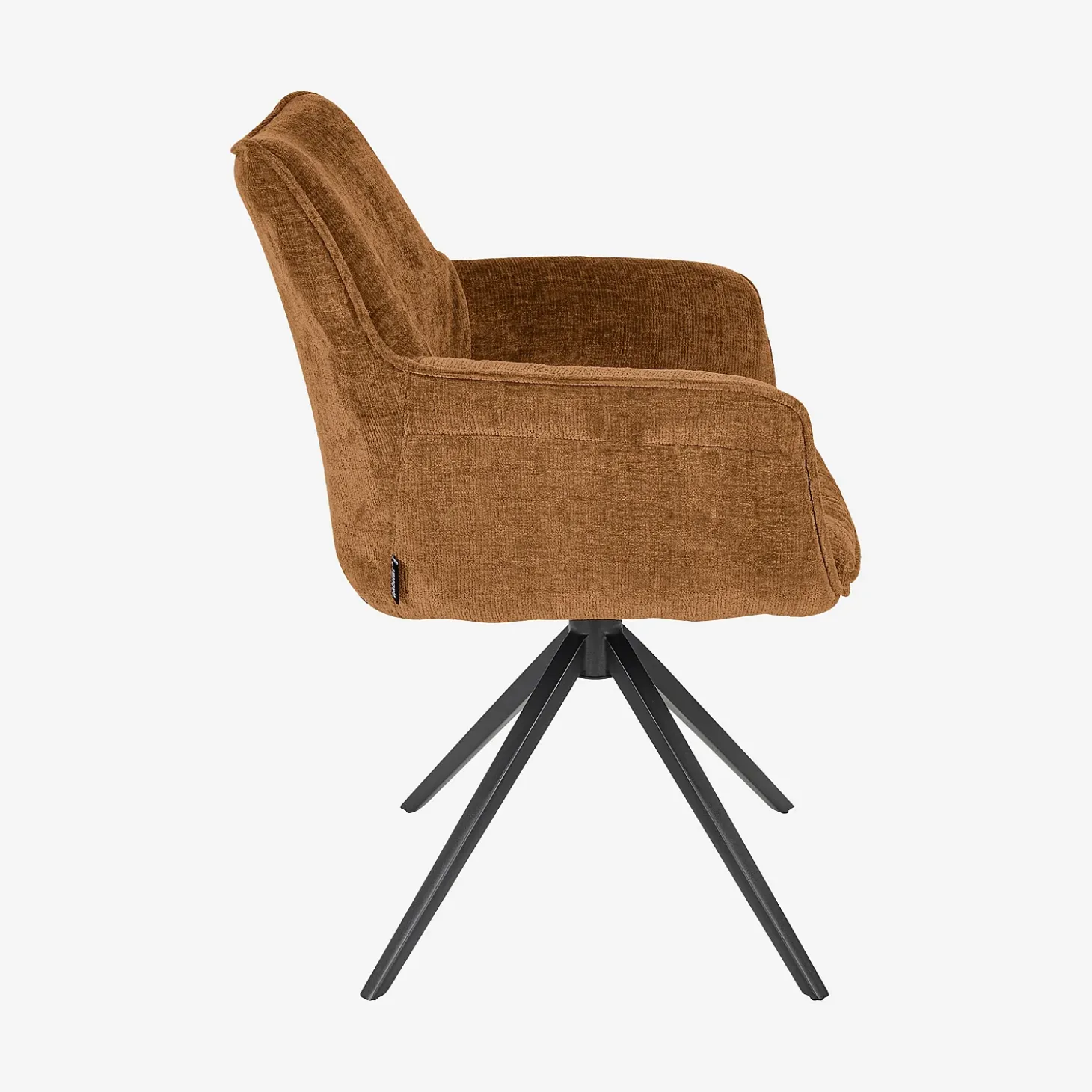 Son revêtement en tissu chenille, au toucher doux et aux reflets discrets, capte délicatement la lumière et apporte de la nuance à son coloris ocre foncé chaleureux.