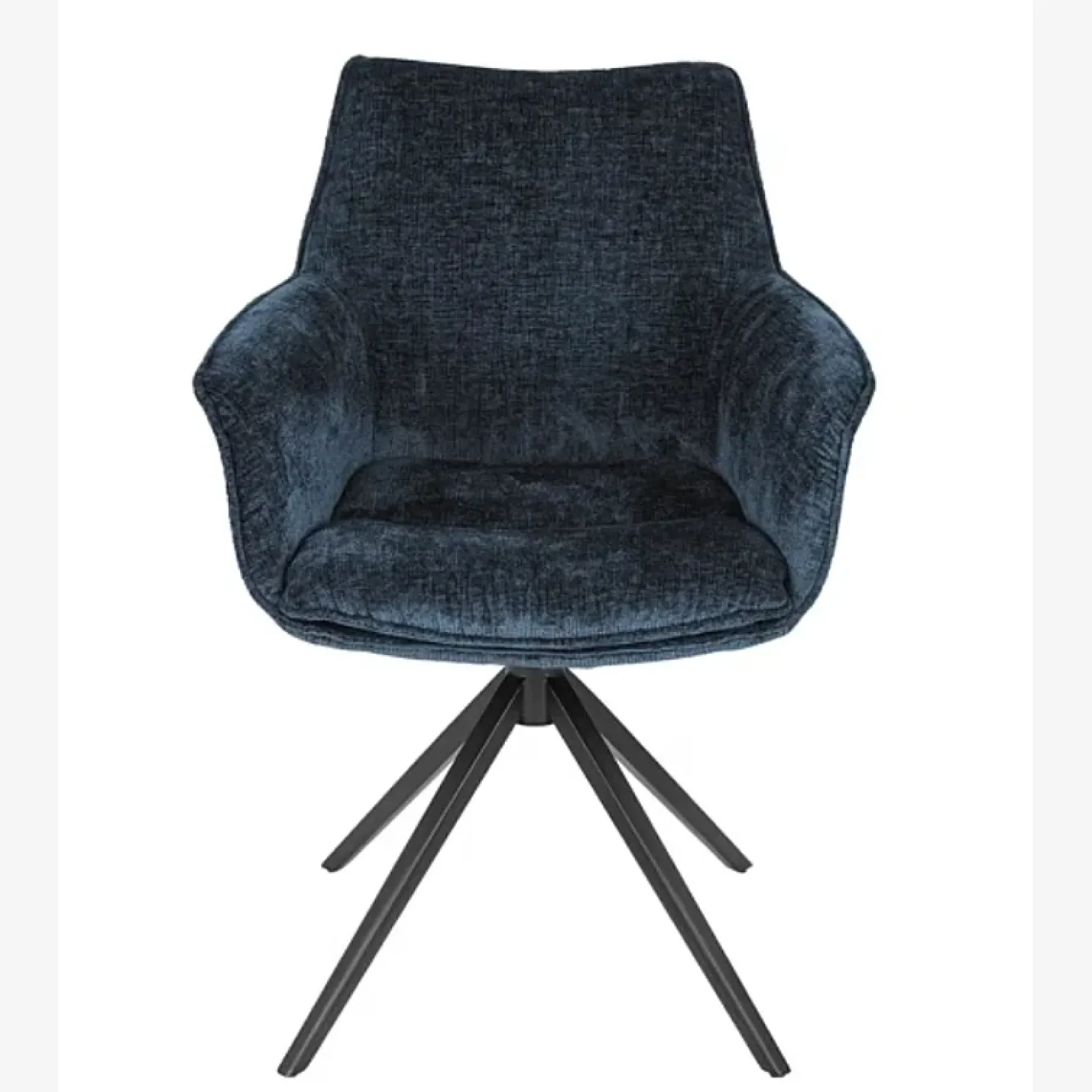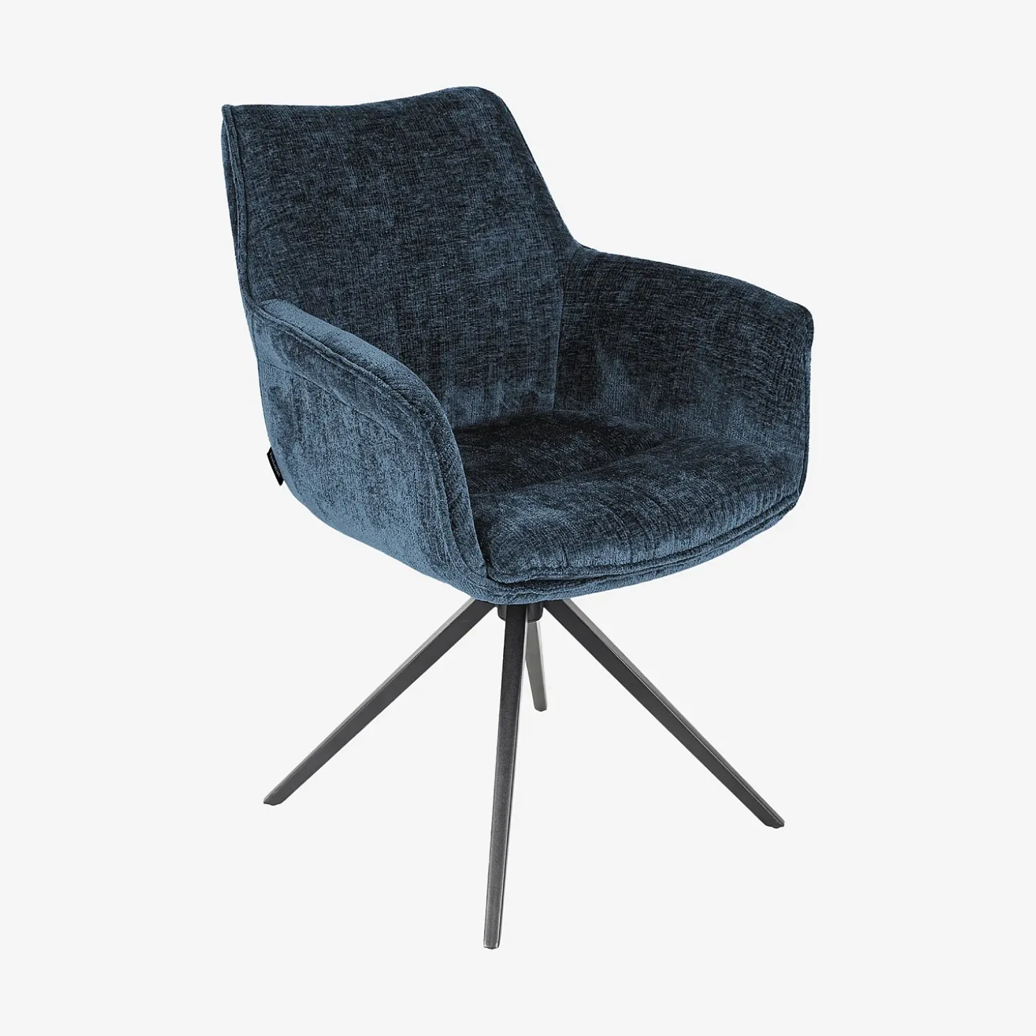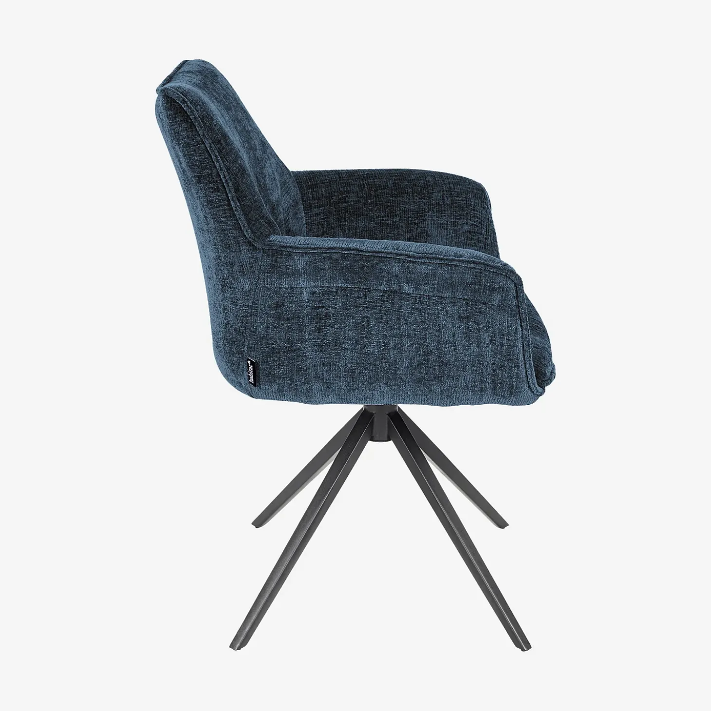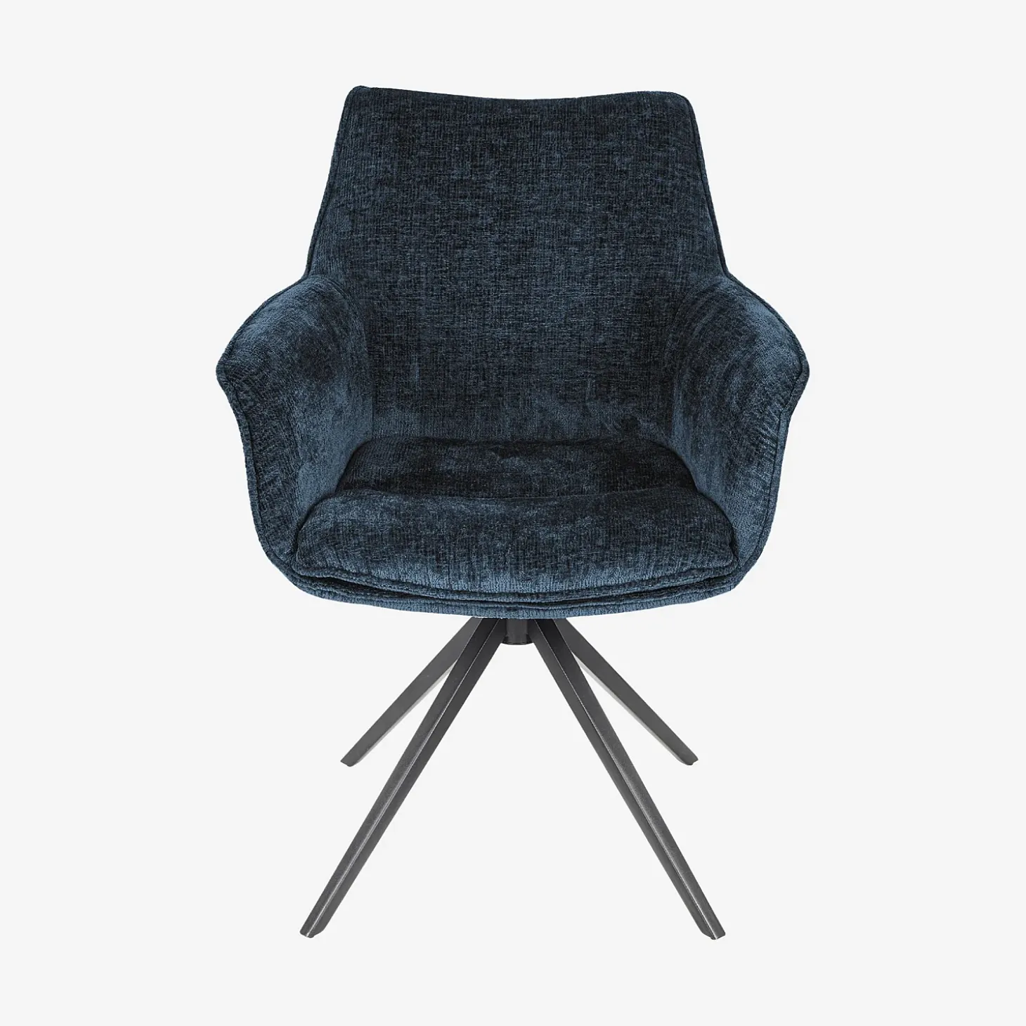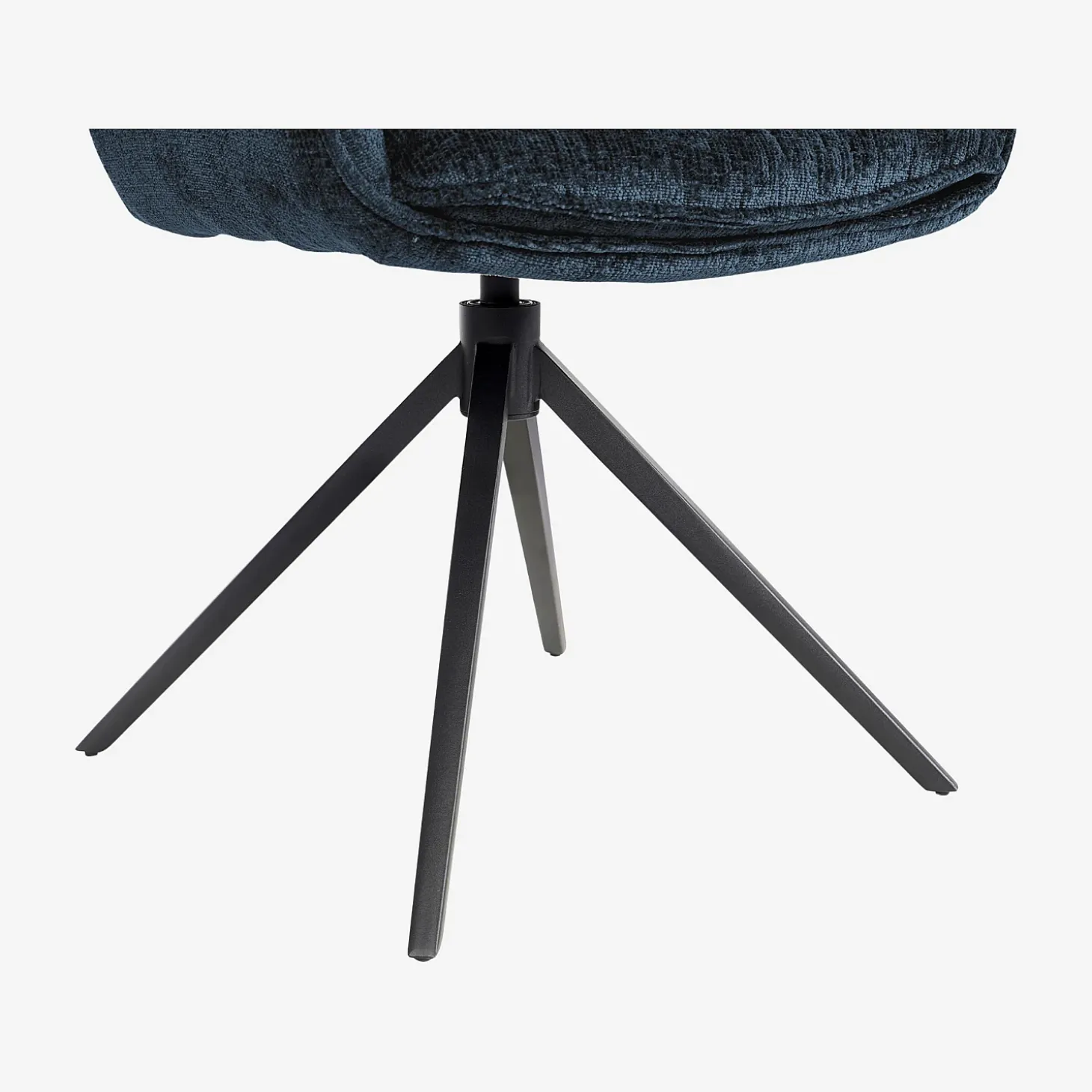 Son revêtement en tissu chenille, au toucher doux et aux reflets discrets, capte délicatement la lumière et apporte de la nuance à son coloris bleu nuit intense.