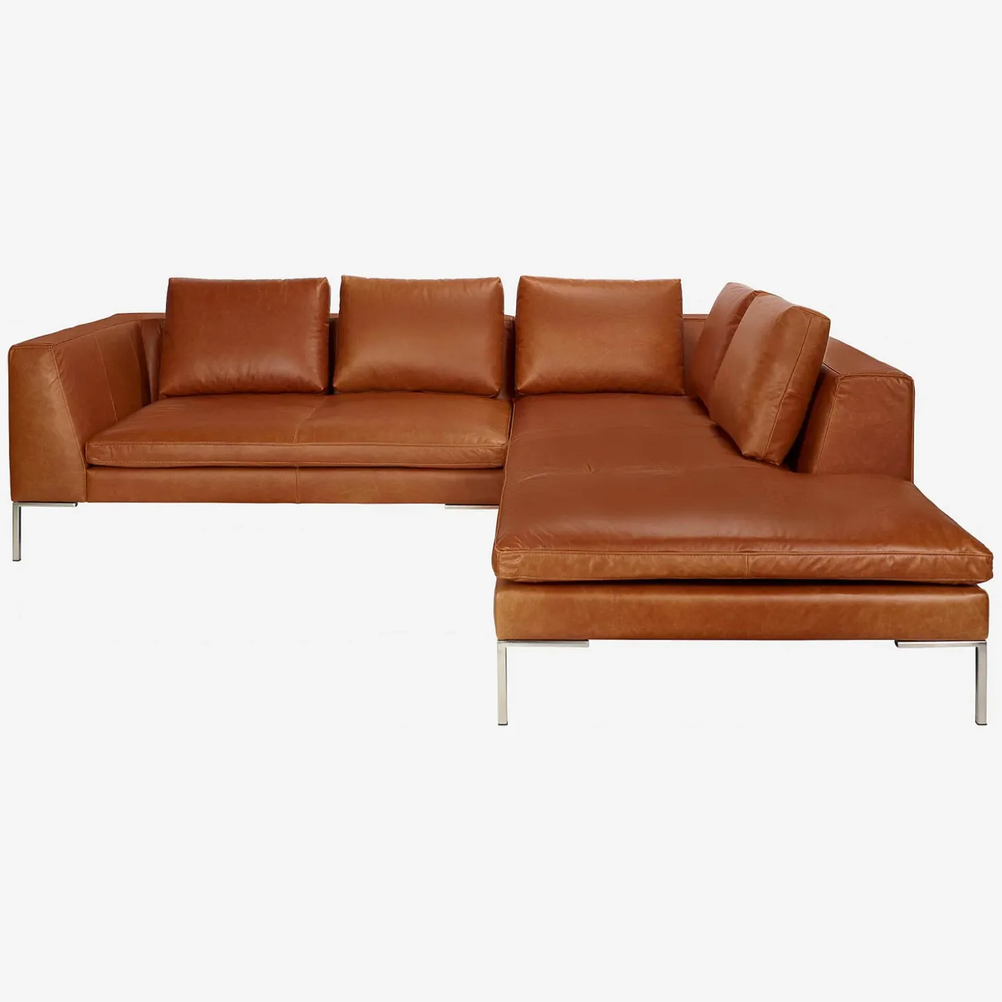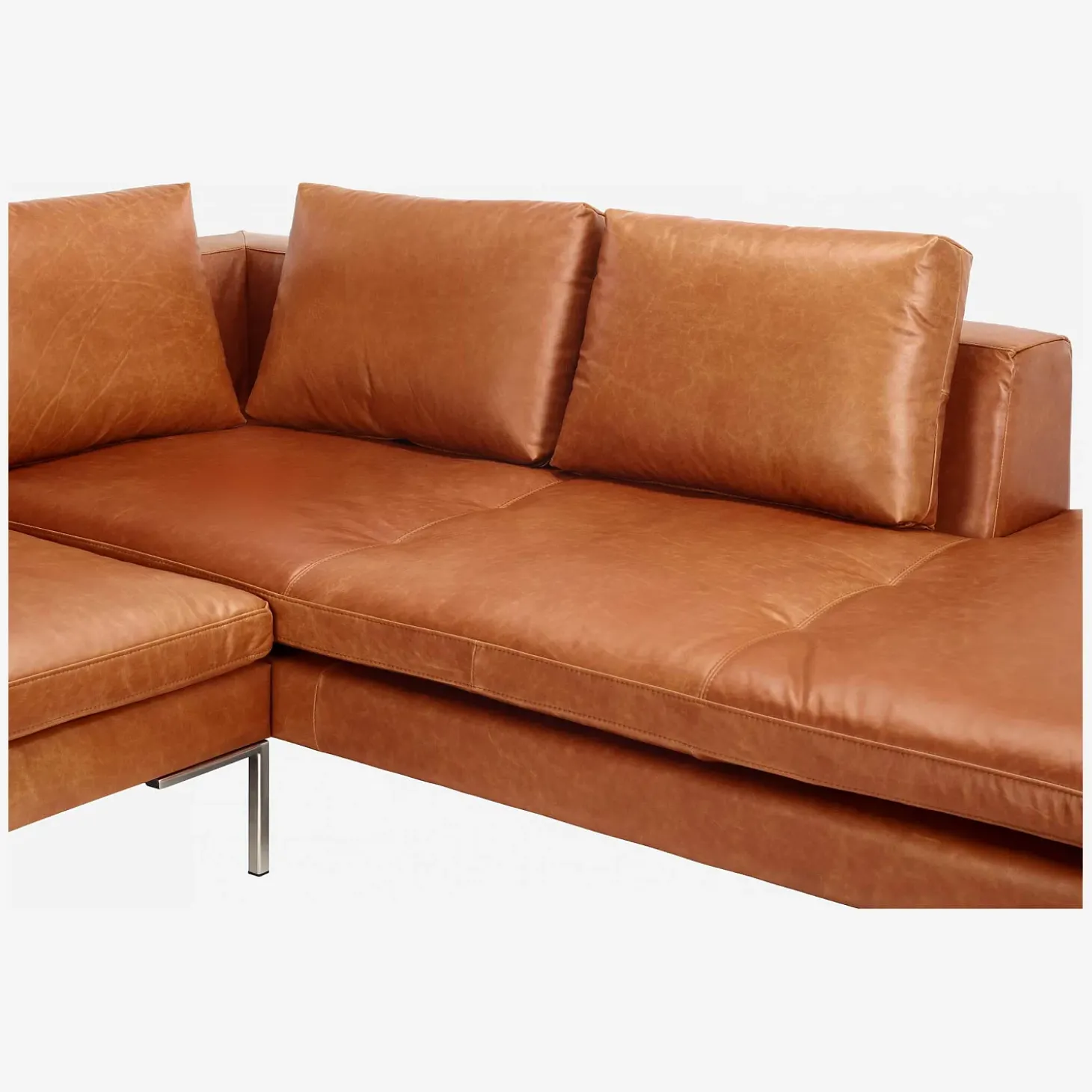 Le canapé d’angle droit Montino en cuir Vintage Leather marron cognac invite à la détente avec son assise moelleuse et ses accoudoirs hauts. Classiques et élégantes, ses lignes élancées et son design intemporel en feront la pièce maîtresse de votre salon.