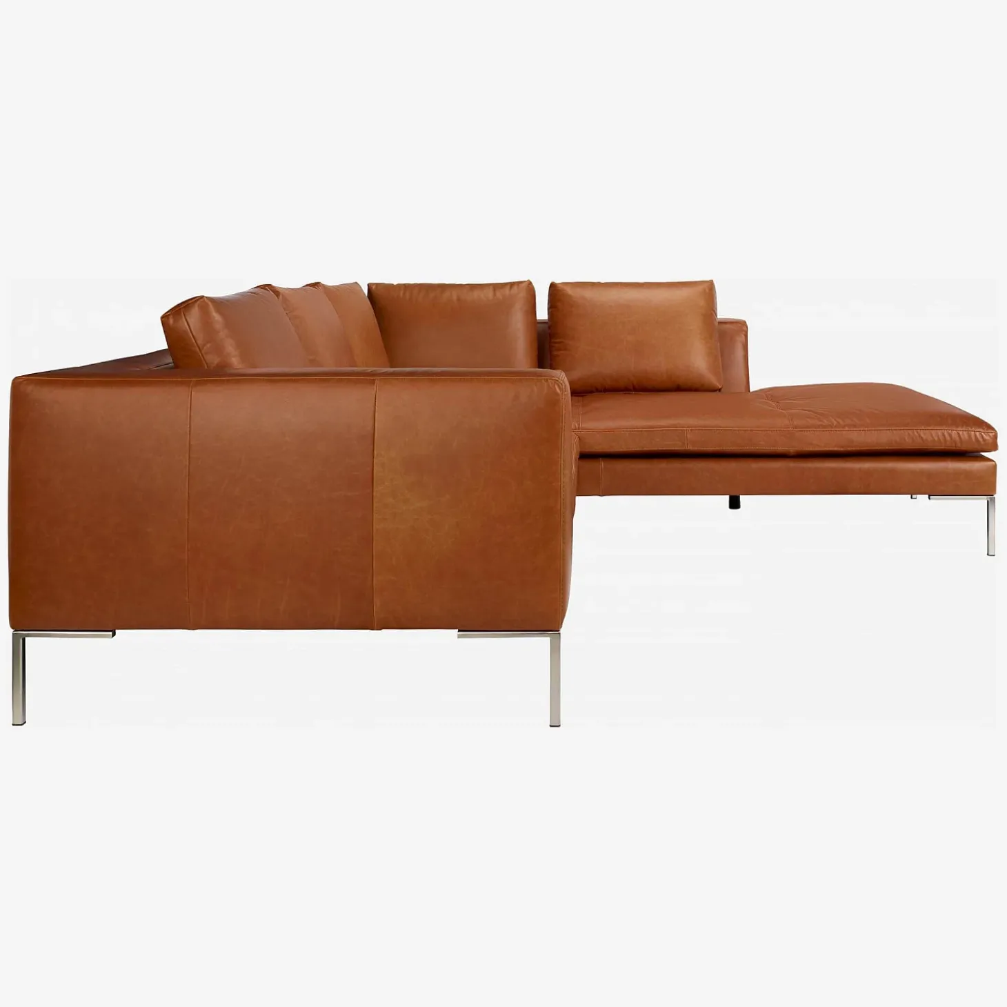Charge maximale supportée : 520 kgMontino joue la carte de l’élégance minimaliste avec ses lignes élancées et son piètement fin. Ce canapé d’angle combine cuir et assise moelleuse pour une détente chic et contemporaine.