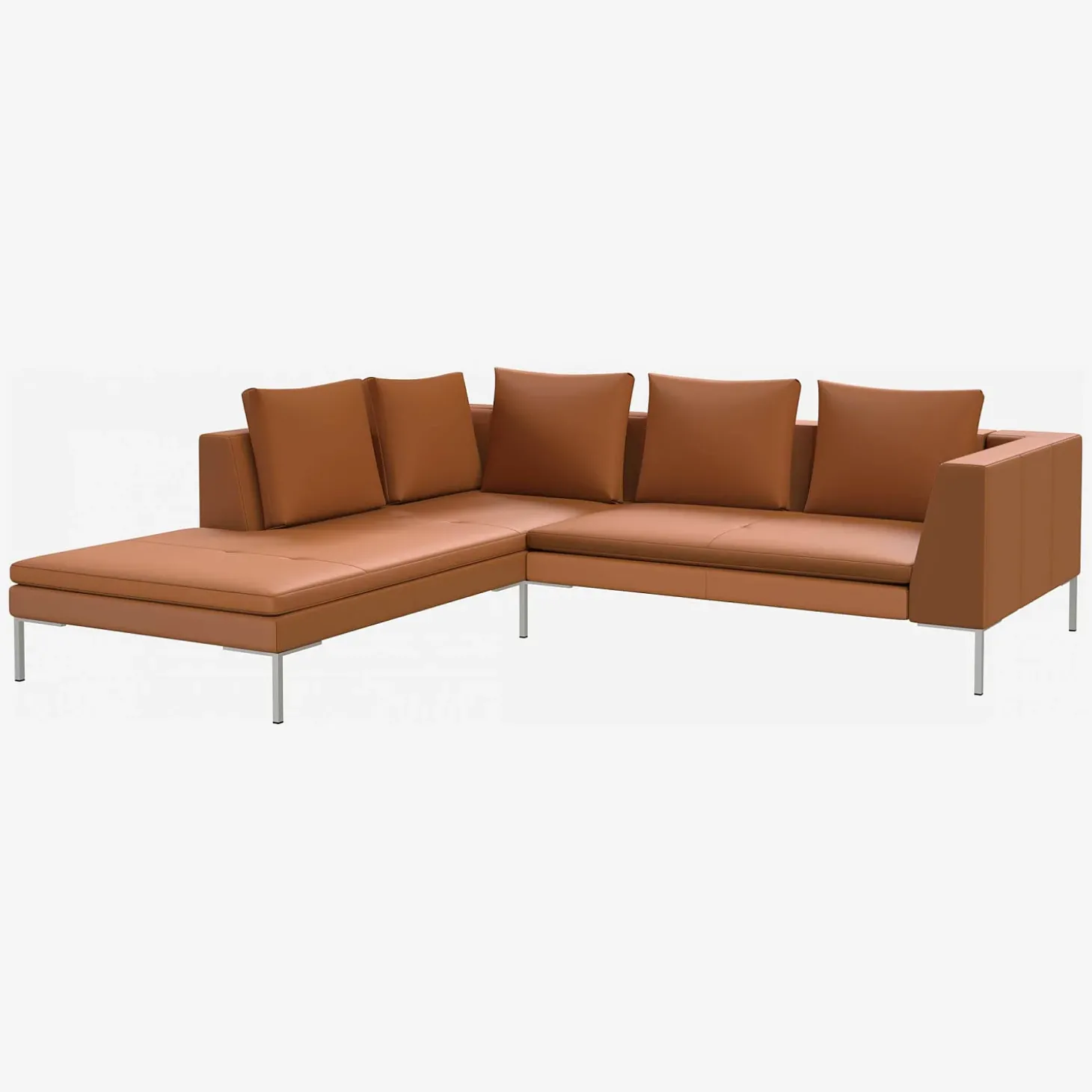 Le canapé d’angle gauche Montino en cuir Savoy marron cognac invite à la détente avec son assise moelleuse et ses accoudoirs hauts. Classiques et élégantes, ses lignes élancées et son design intemporel en feront la pièce maîtresse de votre salon.
