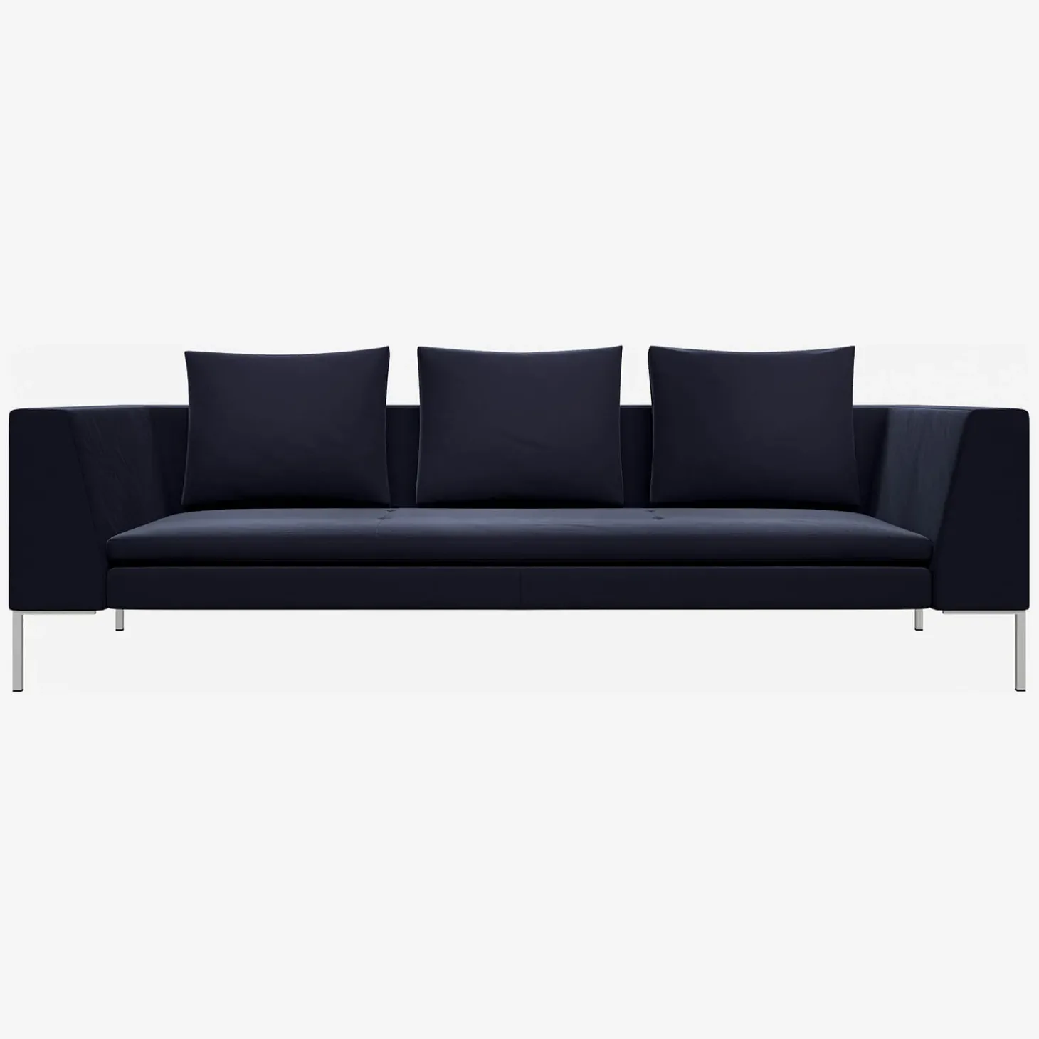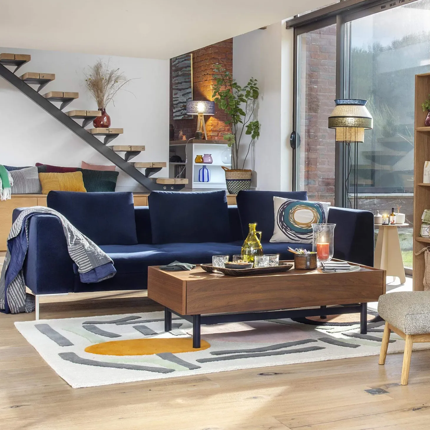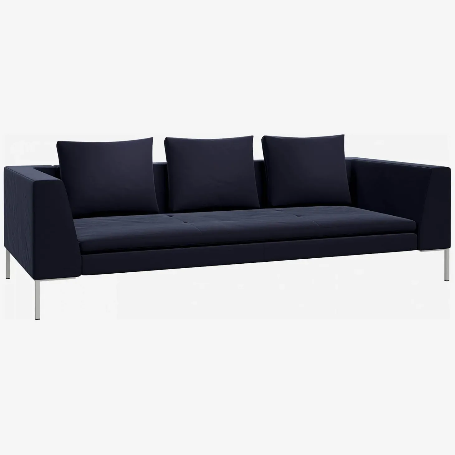 Le canapé 3 places Montino en velours bleu encre invite à la détente avec son assise moelleuse et ses accoudoirs hauts. Classiques et élégantes, ses lignes élancées et son design intemporel en feront la pièce maîtresse de votre salon.