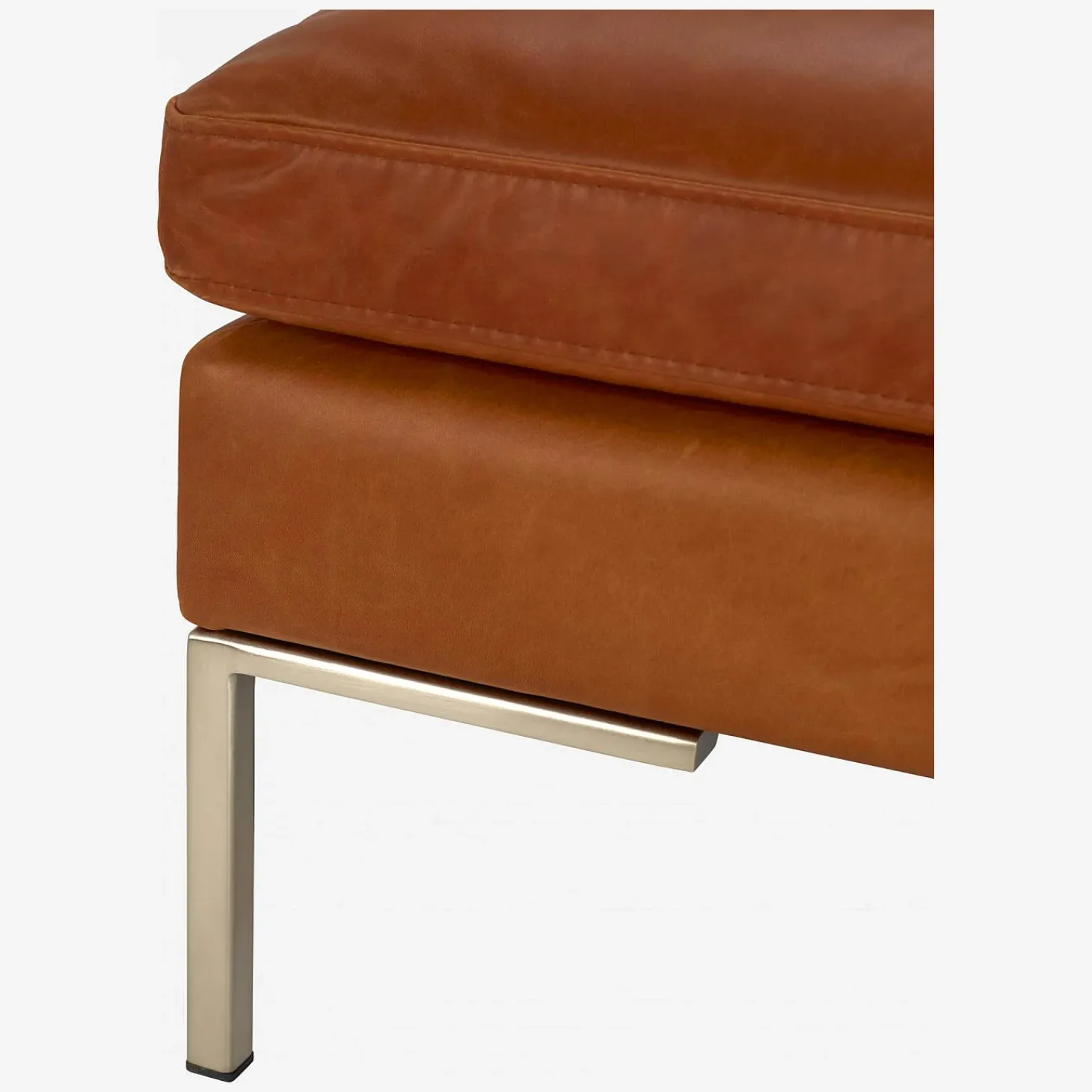 Le repose-pieds Montino en cuir Vintage Leather marron cognac invite à la détente. Classiques et élégantes, ses lignes élancées et son design intemporel accompagnent avec élégance votre canapé.