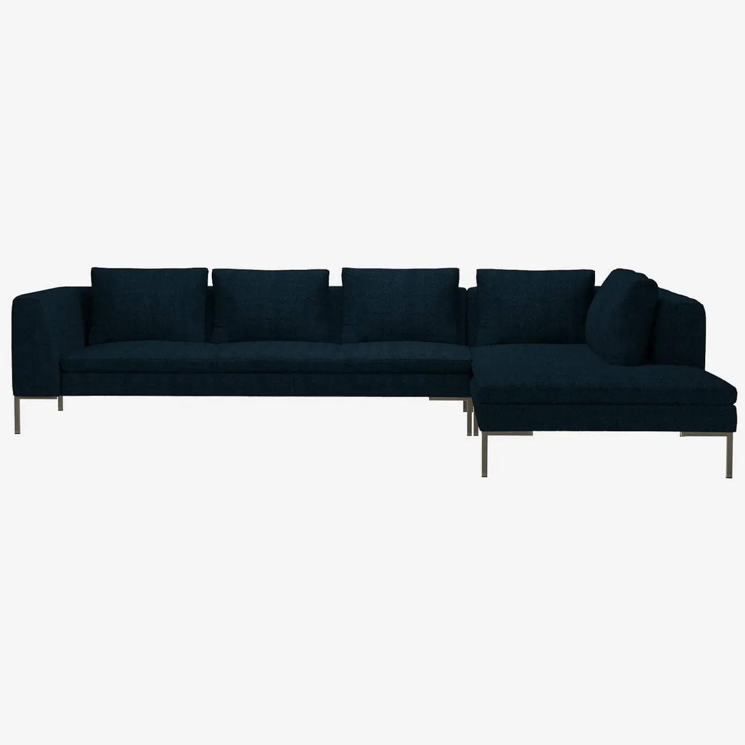 Le grand canapé d’angle droit Montino en tissu Melina bleu encre invite à la détente avec son assise moelleuse et ses accoudoirs hauts. Classiques et élégantes, ses lignes élancées et son design intemporel en feront la pièce maîtresse de votre salon.