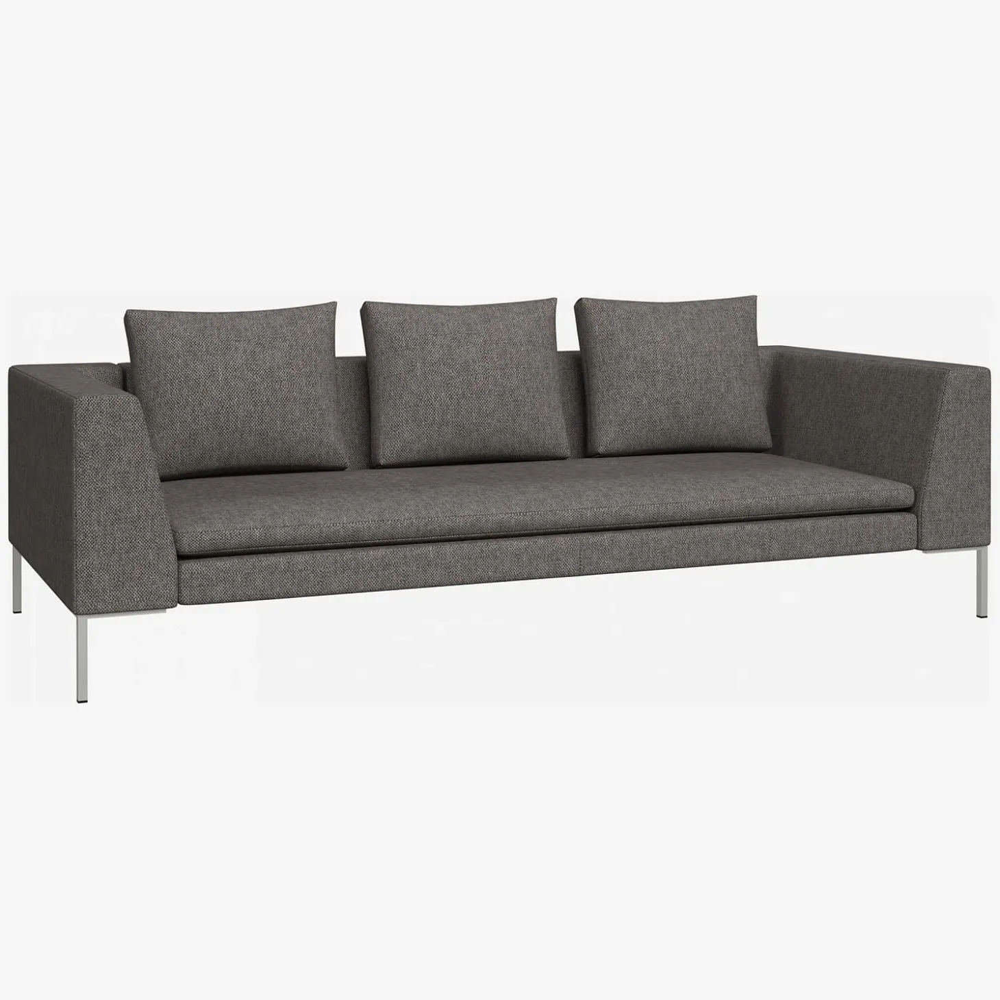 Le canapé 3 places Montino en tissu Bellagio gris nocturne invite à la détente avec son assise moelleuse et ses accoudoirs hauts. Classiques et élégantes, ses lignes élancées et son design intemporel en feront la pièce maîtresse de votre salon.