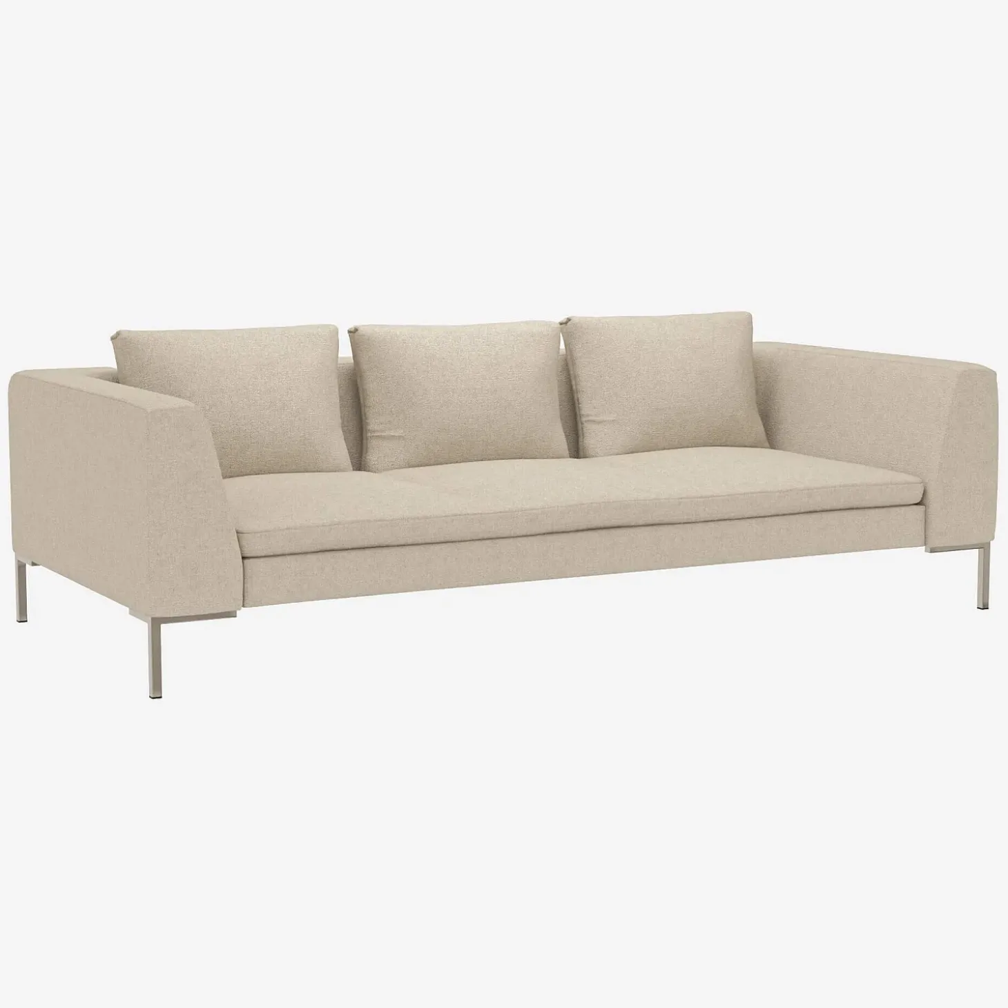 Charge maximale supportée : 390 kgLignes équilibrées, tissu et piètement fin définissent ce canapé 3 places à l’esthétique sobre et contemporaine. Une assise élégante qui s’intègre naturellement dans un salon d’inspiration minimaliste.