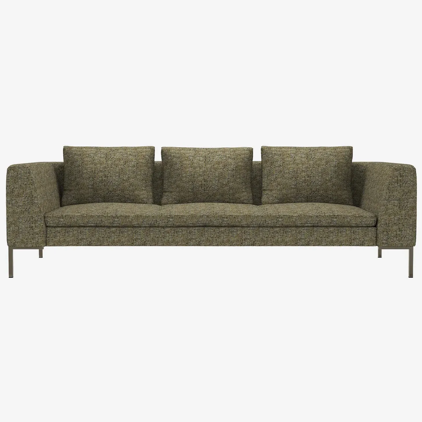 Charge maximale supportée : 650 kgLignes équilibrées, tissu et piètement fin définissent ce canapé 3 places à l’esthétique sobre et contemporaine. Une assise élégante qui s’intègre naturellement dans un salon d’inspiration minimaliste.
