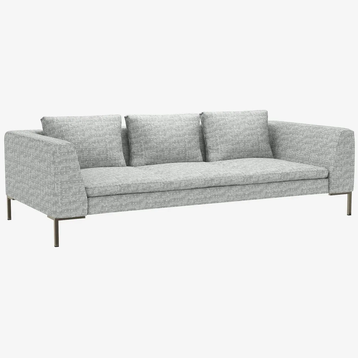 Charge maximale supportée : 650 kgLignes équilibrées, tissu et piètement fin définissent ce canapé 3 places à l’esthétique sobre et contemporaine. Une assise élégante qui s’intègre naturellement dans un salon d’inspiration minimaliste.