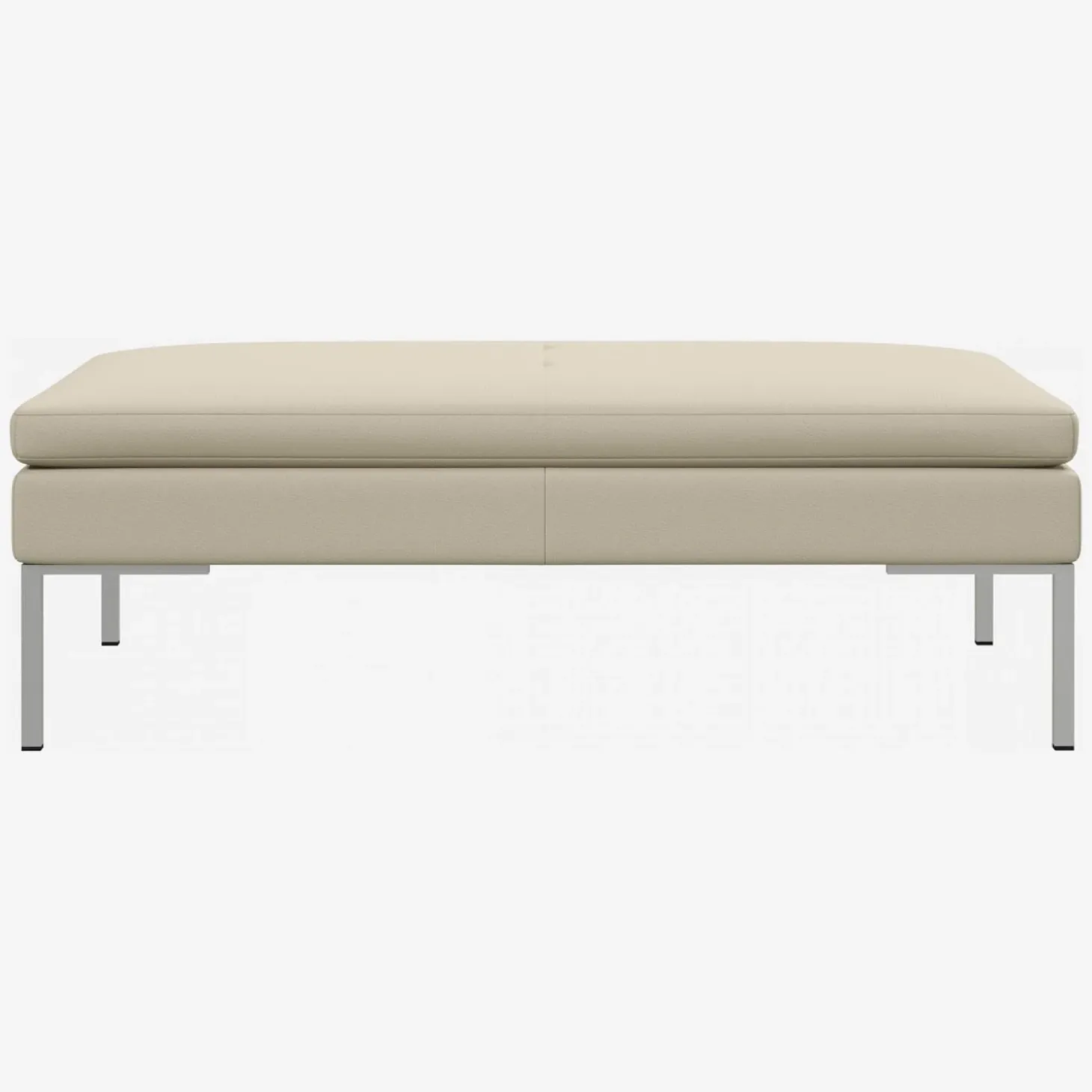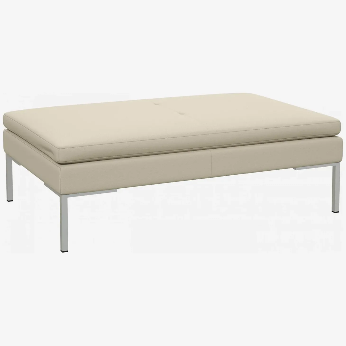 Le repose-pieds Montino en cuir Savoy blanc albâtre invite à la détente. Classiques et élégantes, ses lignes élancées et son design intemporel accompagnent avec élégance votre canapé.