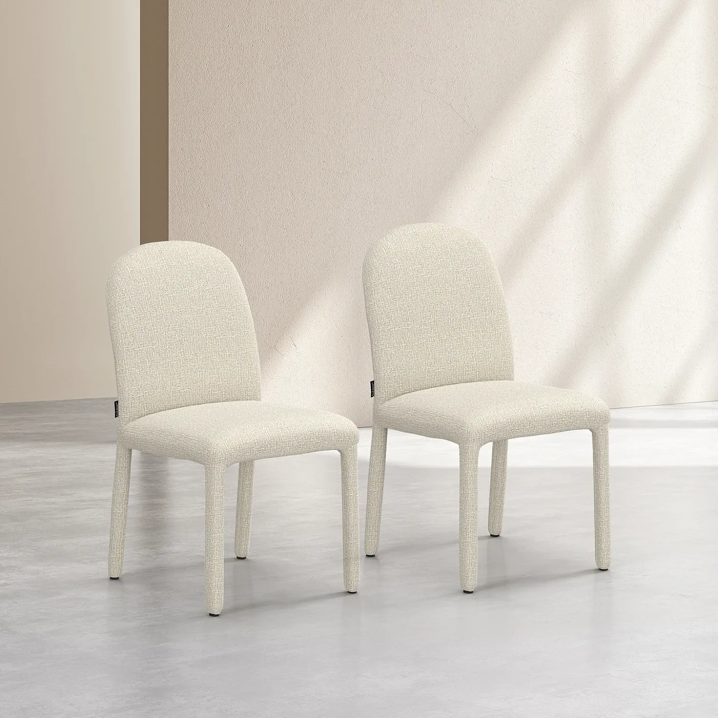 Leur revêtement en tissu sable blanc apporte une clarté douce et naturelle à l’ensemble. Ce coloris lumineux s’intègre facilement dans des intérieurs épurés, en ajoutant une touche de légèreté tout en restant discret. Les dossiers et les assises sont garnis de mousse, permettant ainsi de profiter de moments de partage avec aisance.
