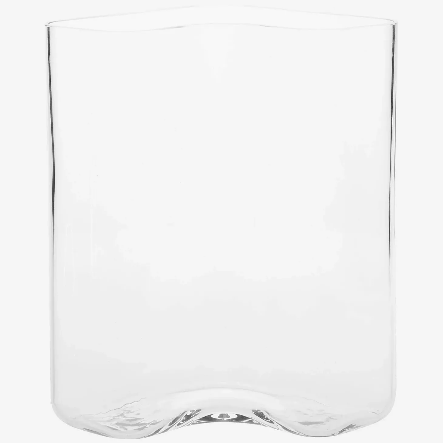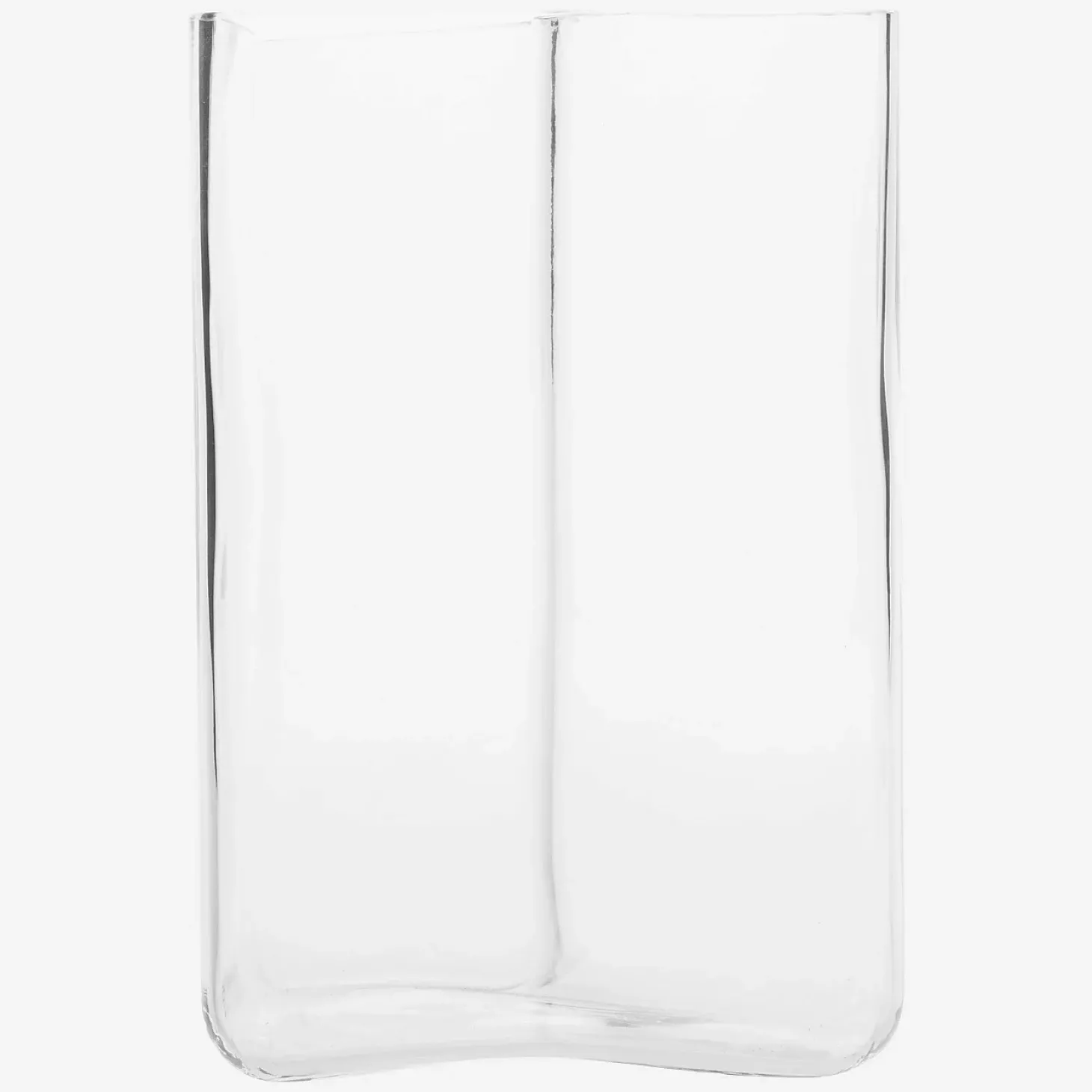 Le vase Nelson de 30 cm est en forme de coin avec un angle perpendiculaire. Il utilise le verre, un matériau classique et emprunte sa forme atypique au mouvement art déco.