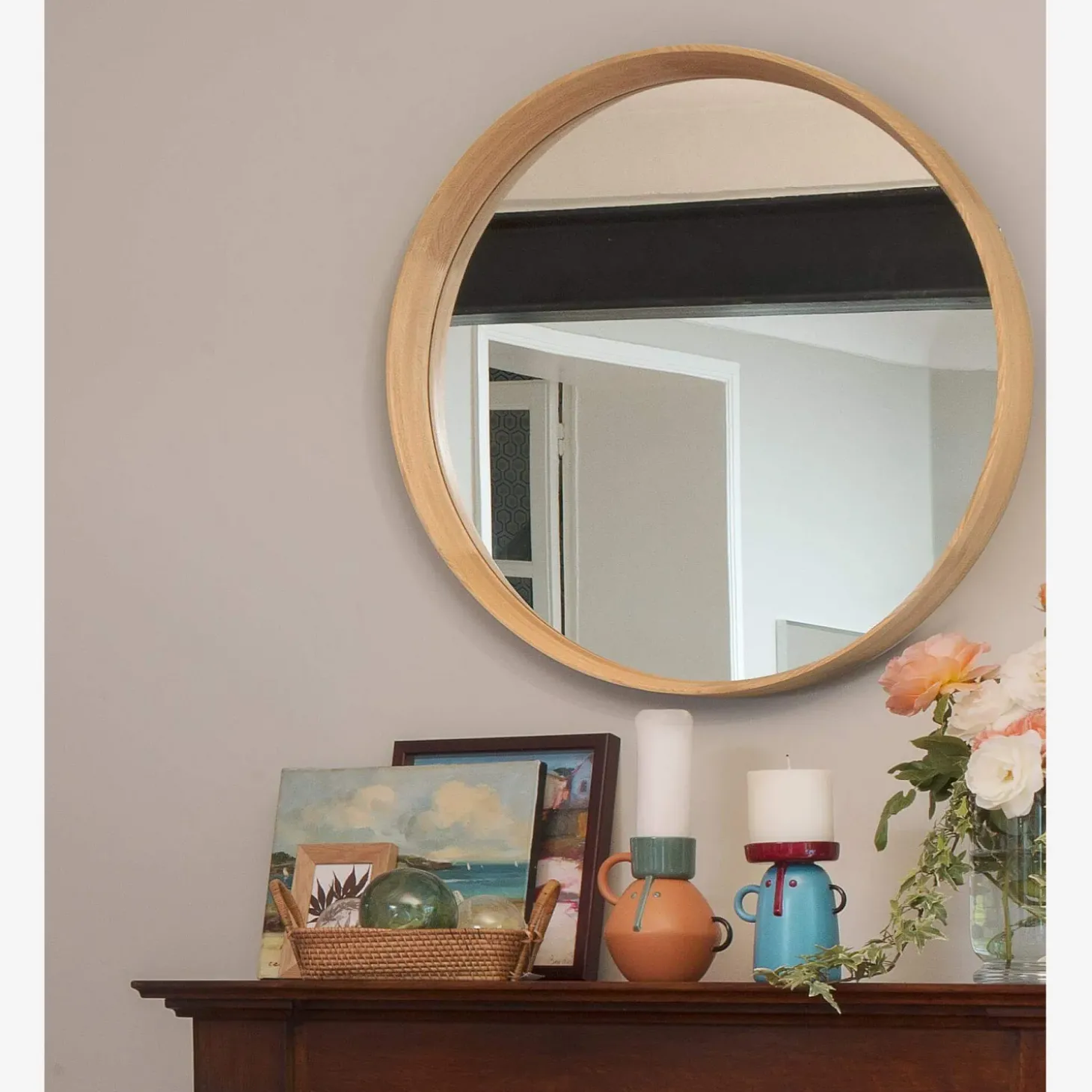 Le cadre du miroir rond Neptune est en chêne.