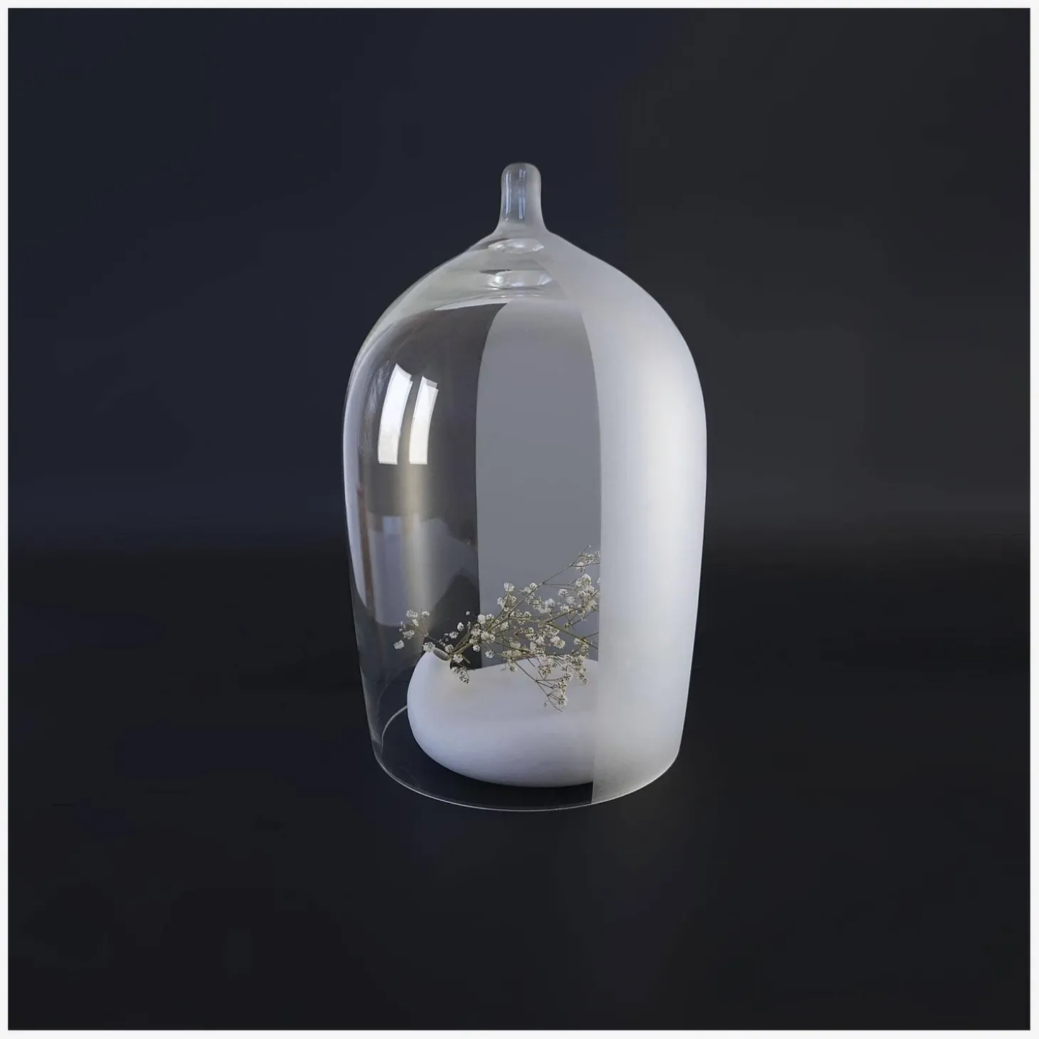 En verre soufflé et sablé.Nippy, la cloche en verre soufflé imaginée par Piergil Fourquié, réinvente avec poésie et délicatesse le traditionnel globe de verre pour sublimer vos objets précieux.