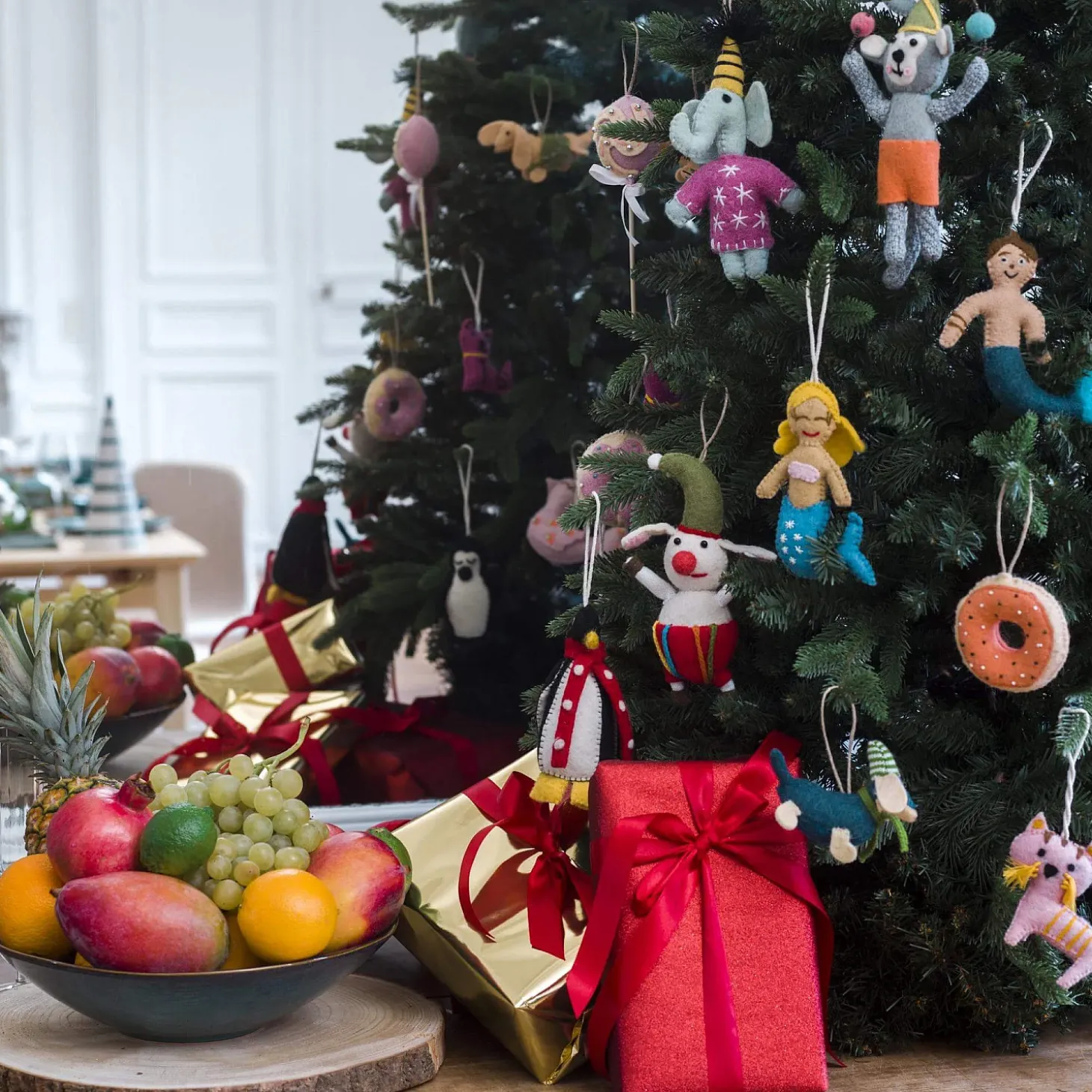 Décorez votre sapin de Noël avec la gamme Ochou et ses sujets en tissu.