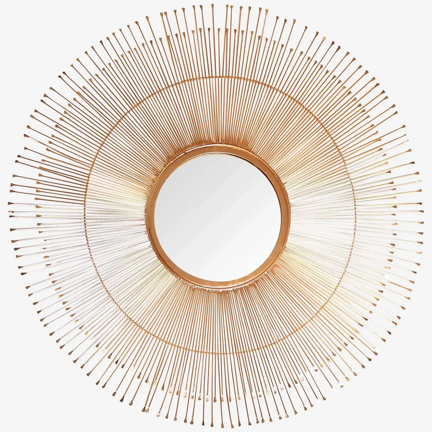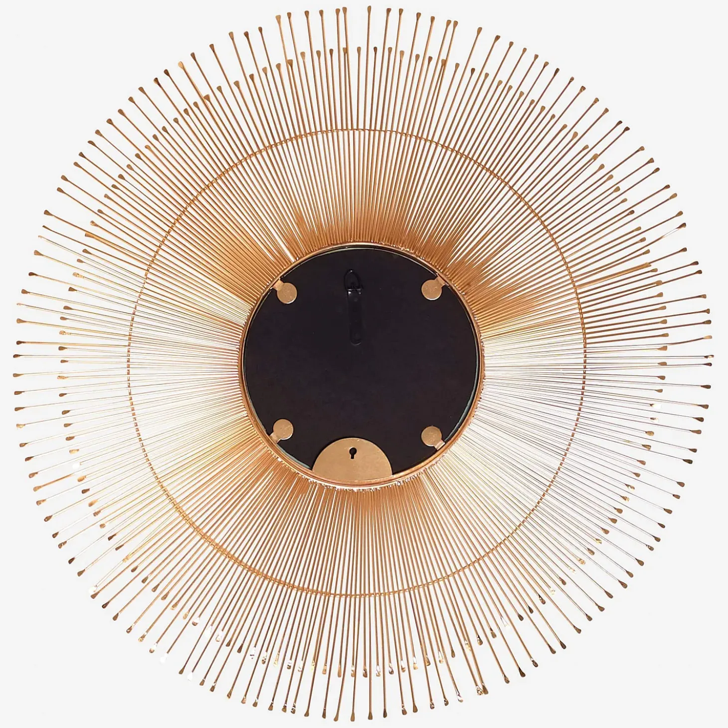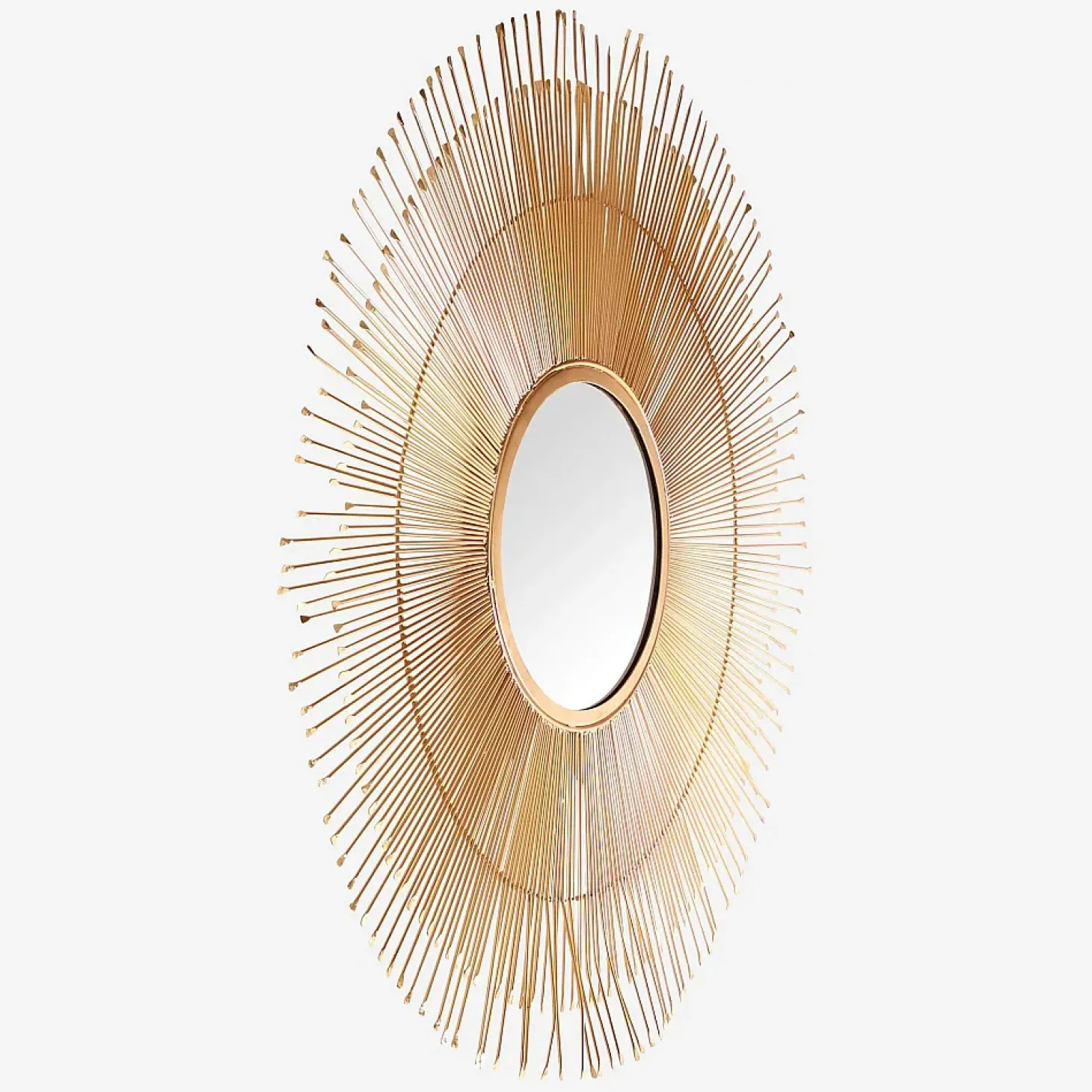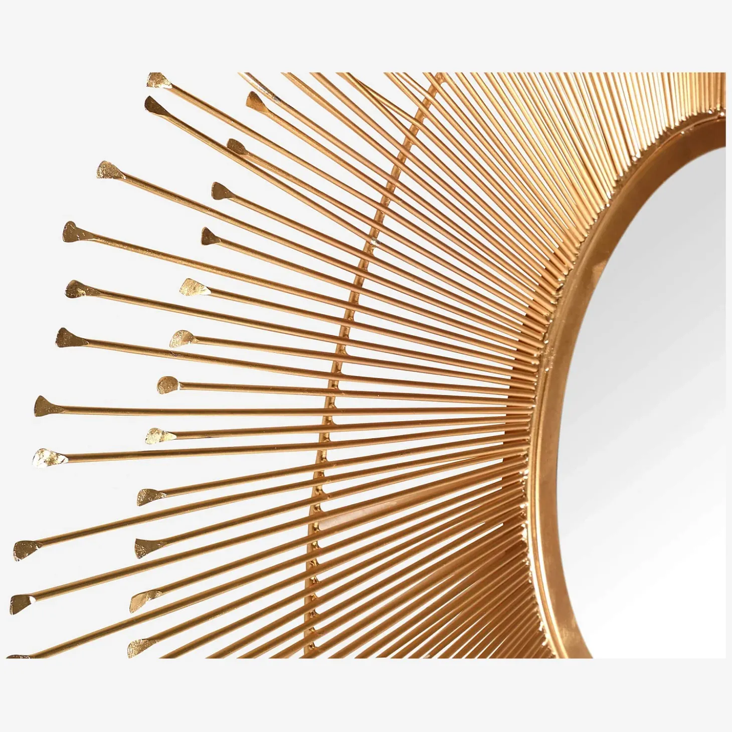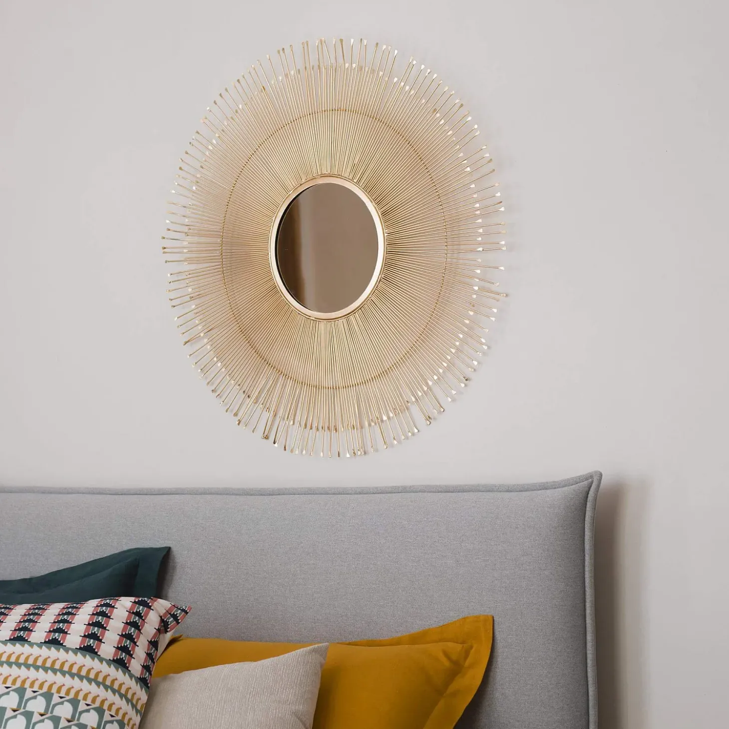 **Fabriqué en Inde**Le miroir rond Olga en fer doré, d’inspiration Art Déco, illumine vos murs de ses rayons élégants et apporte une touche solaire à votre intérieur.