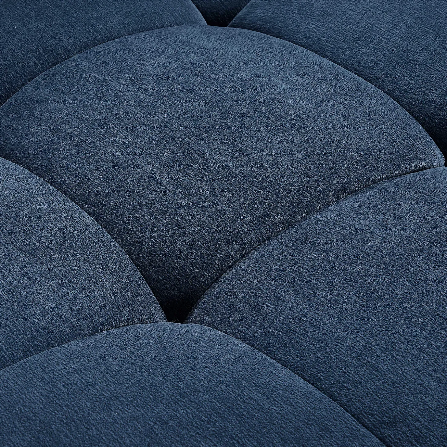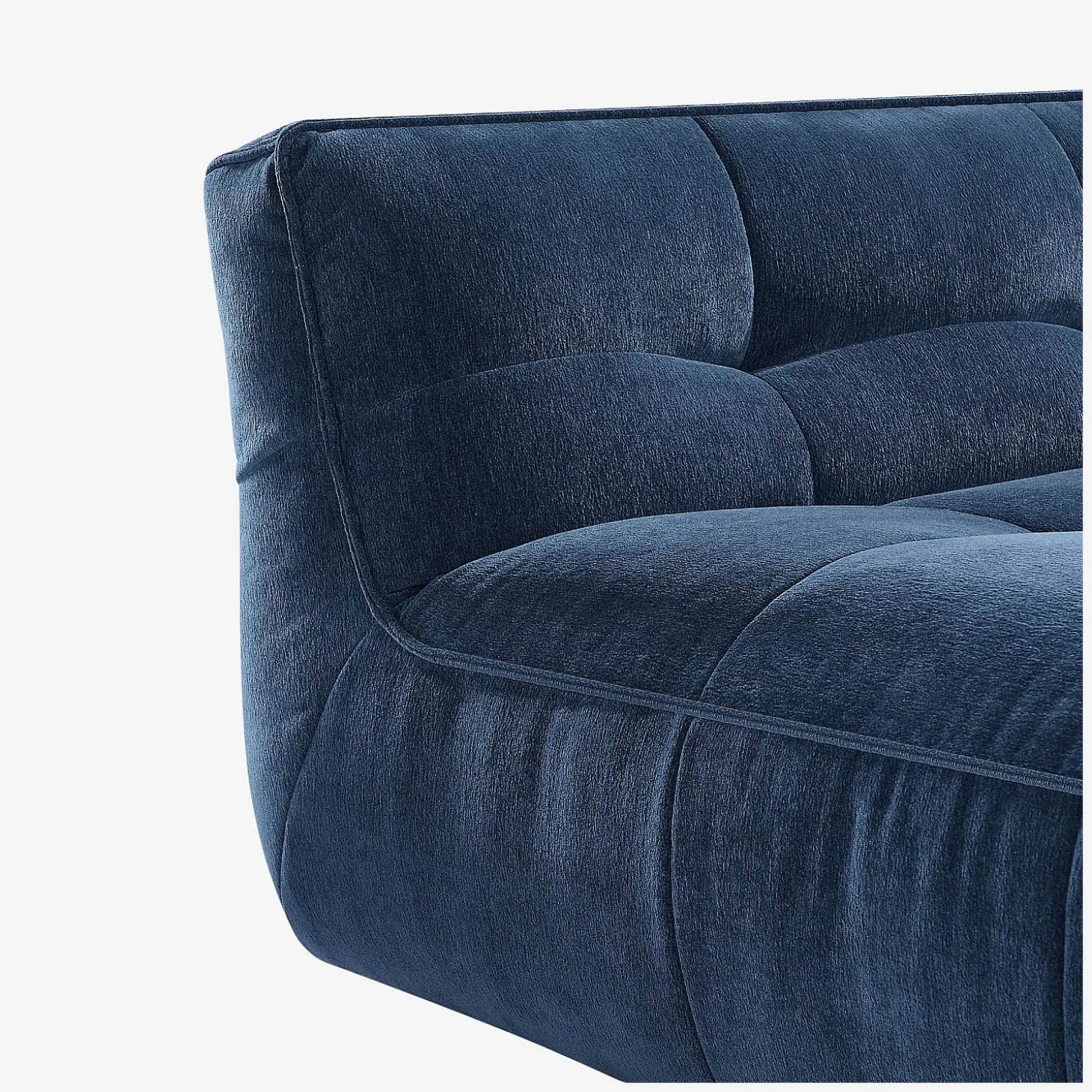 Ce canapé au design moderne est recouvert d’un tissu bleu océan, il apporte une atmosphère sophistiquée, audacieuse et résolument contemporaine, enrichissant l’esthétique de tout intérieur.
