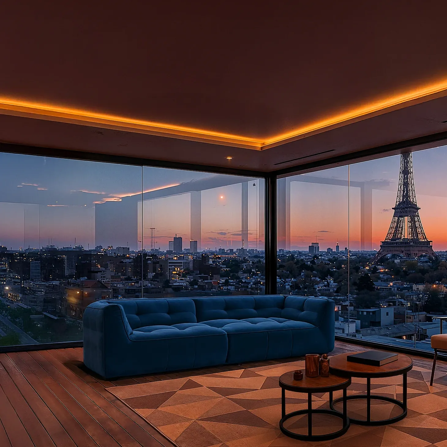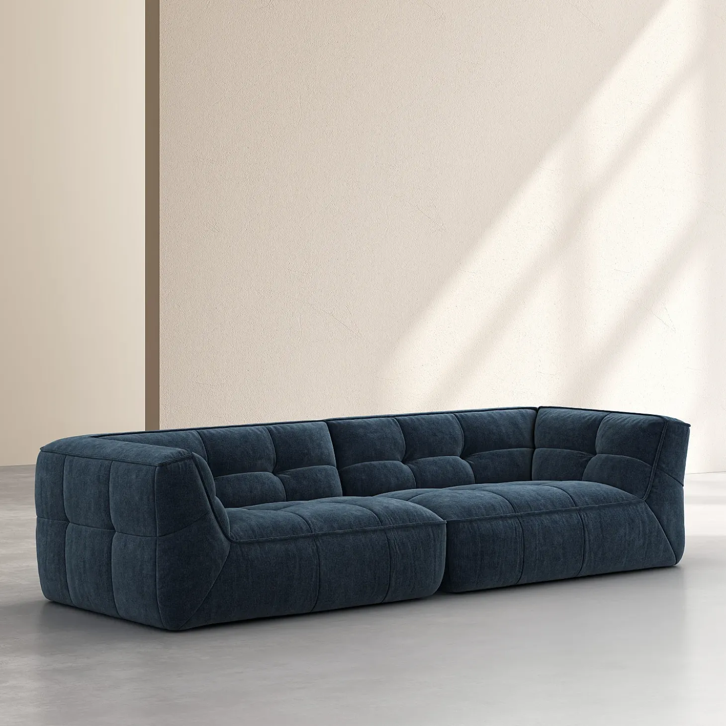 Ce modèle au design raffiné est recouvert d’un tissu bleu océan, il magnifie l’espace en insufflant une atmosphère sophistiquée, audacieuse et résolument contemporaine.