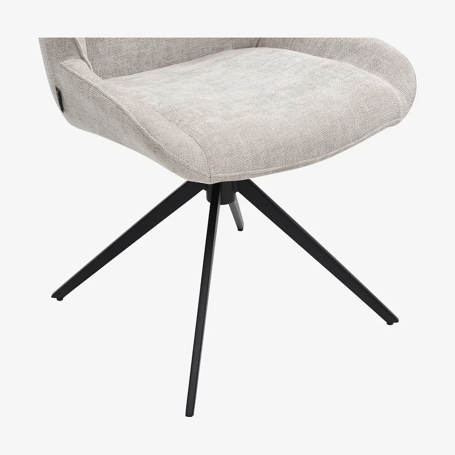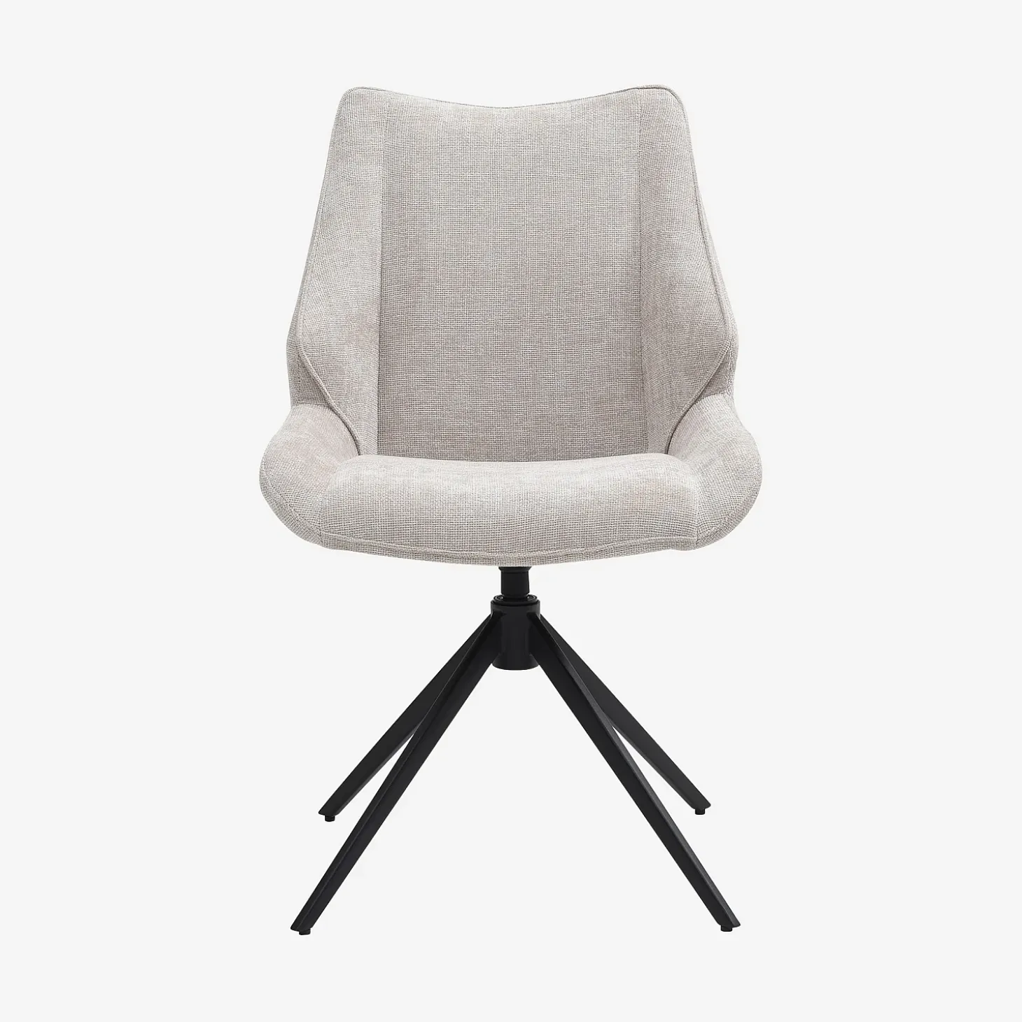 Leur revêtement en tissu chenille, au toucher doux et à l’aspect subtilement texturé, est mis en valeur par une teinte grège sobre. Ce coloris doux souligne l’élégance de la chaise tout en apportant une note apaisante à la pièce.