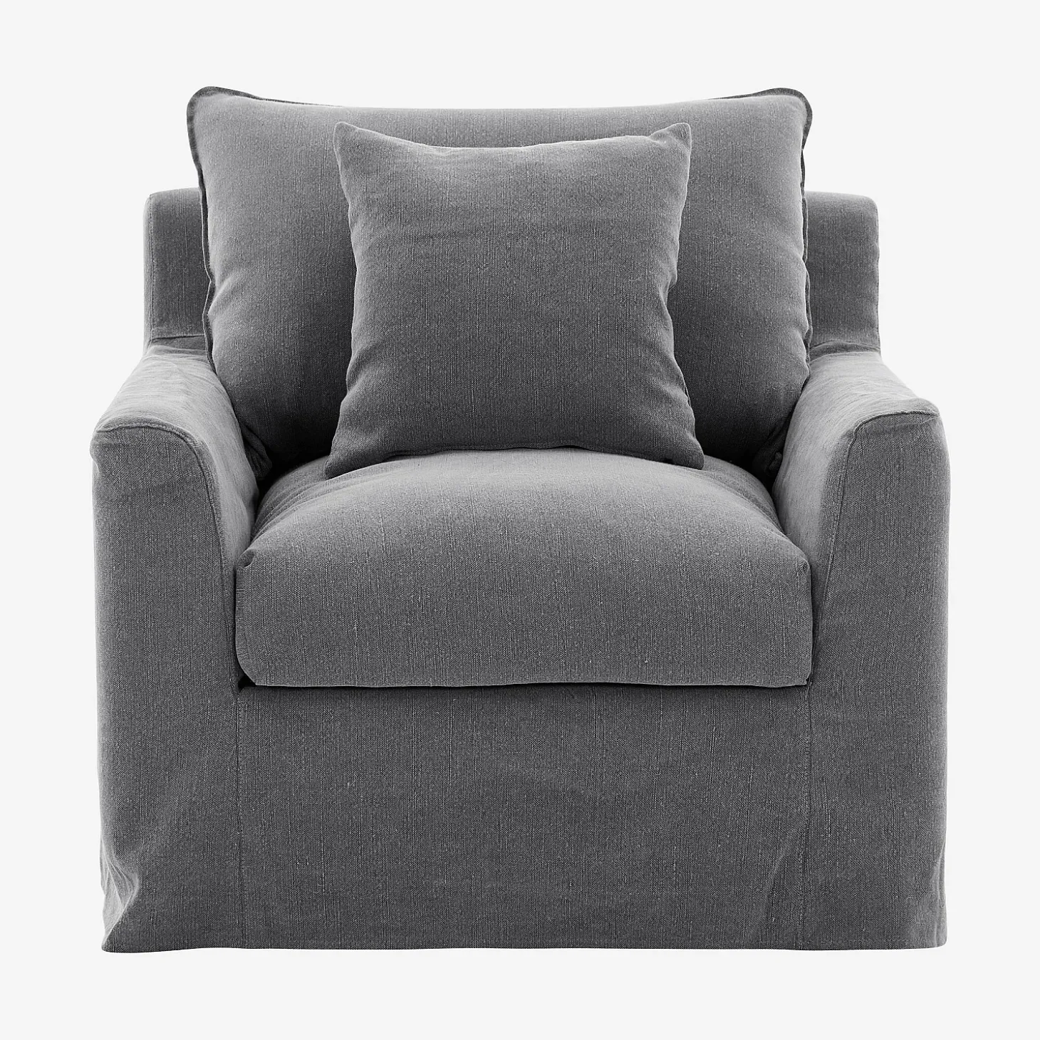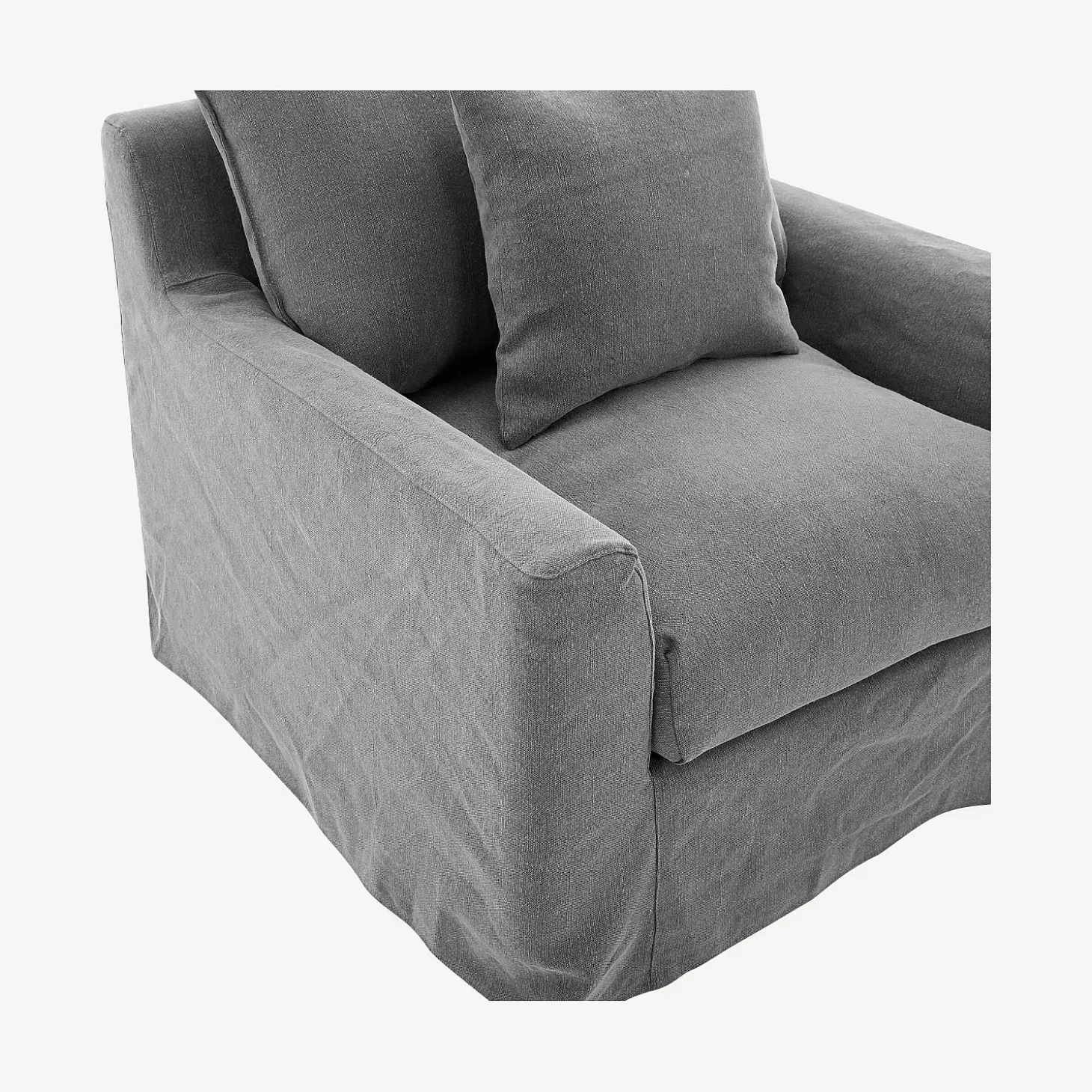 Son garnissage moelleux assure un confort enveloppant, idéal pour s’accorder une parenthèse de repos. Habillé d’un tissu en coton et lin, il présente une texture douce et légèrement irrégulière, qui renforce son charme brut et décontracté. Sa teinte gris ardoise s’intègre facilement aux intérieurs en apportant modernité et profondeur.