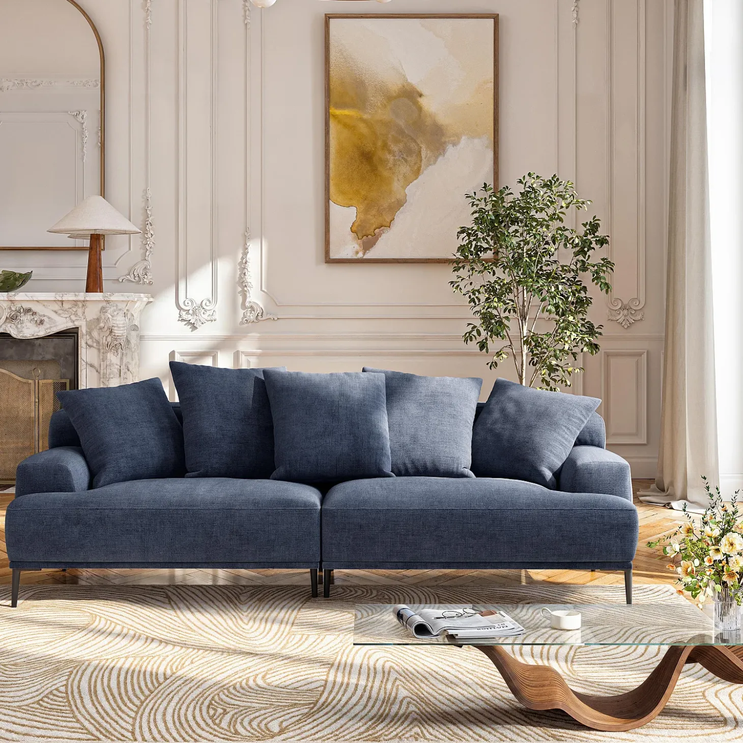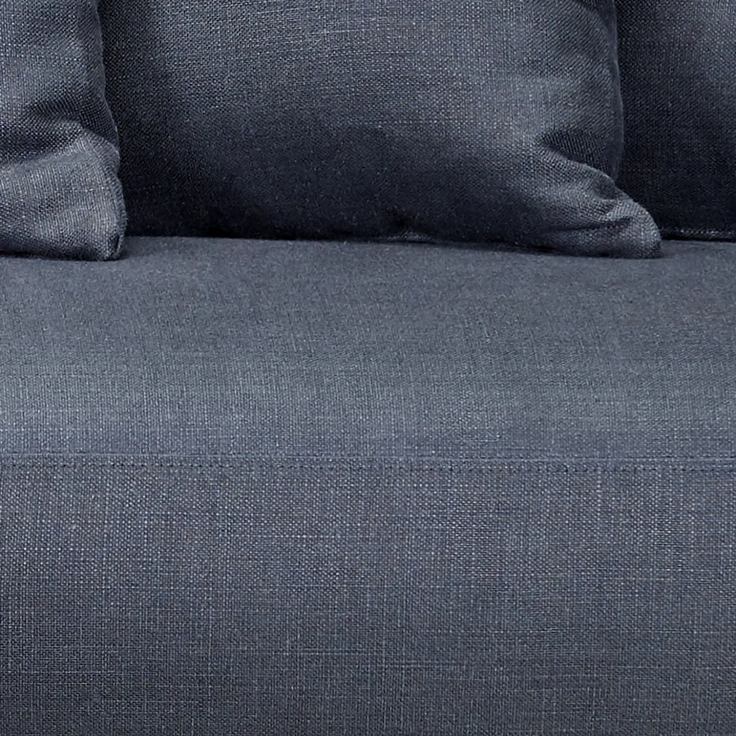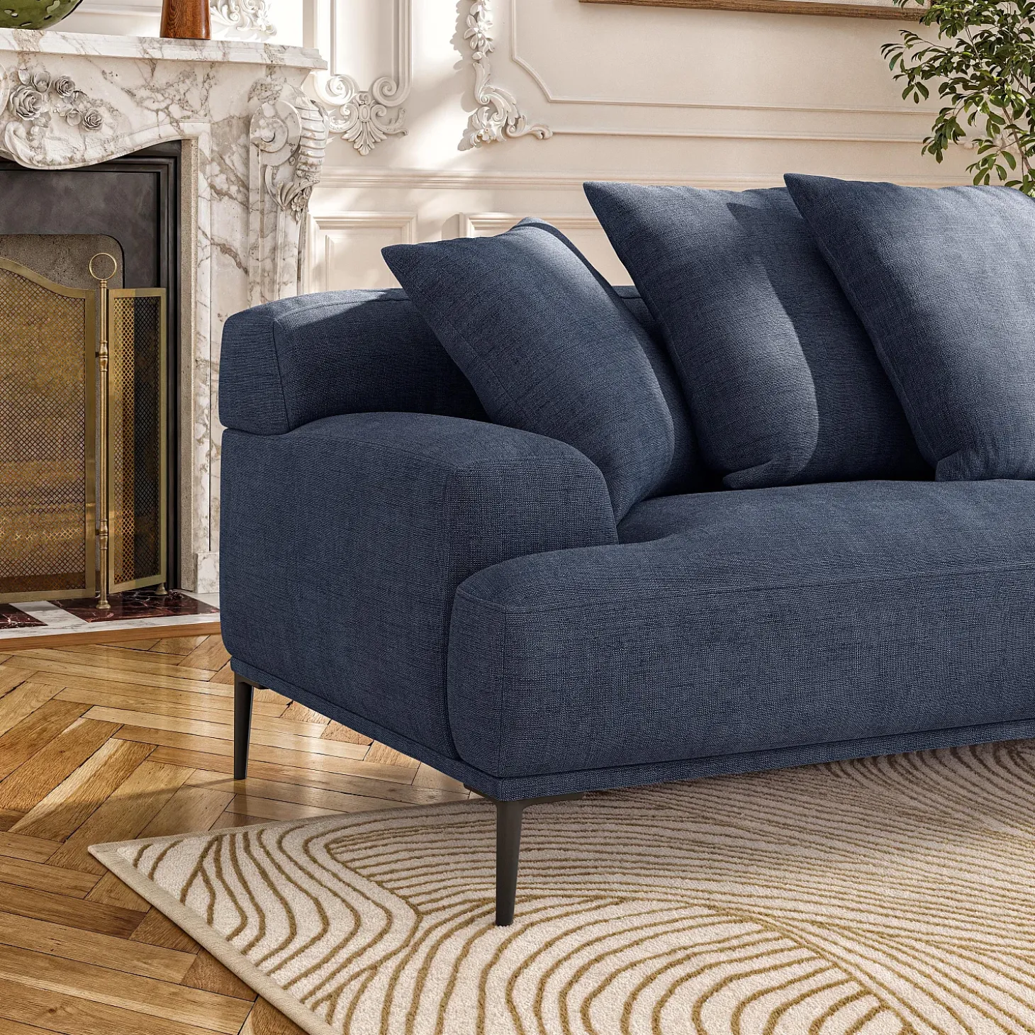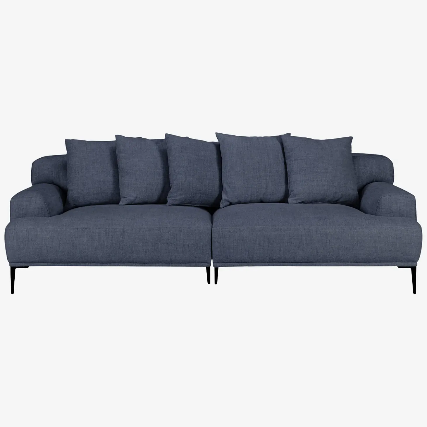 Le canapé 3 places Ottone II en coton et lin se décline en bleu afin d’apporter une note de couleur discrète et apaisante au salon.