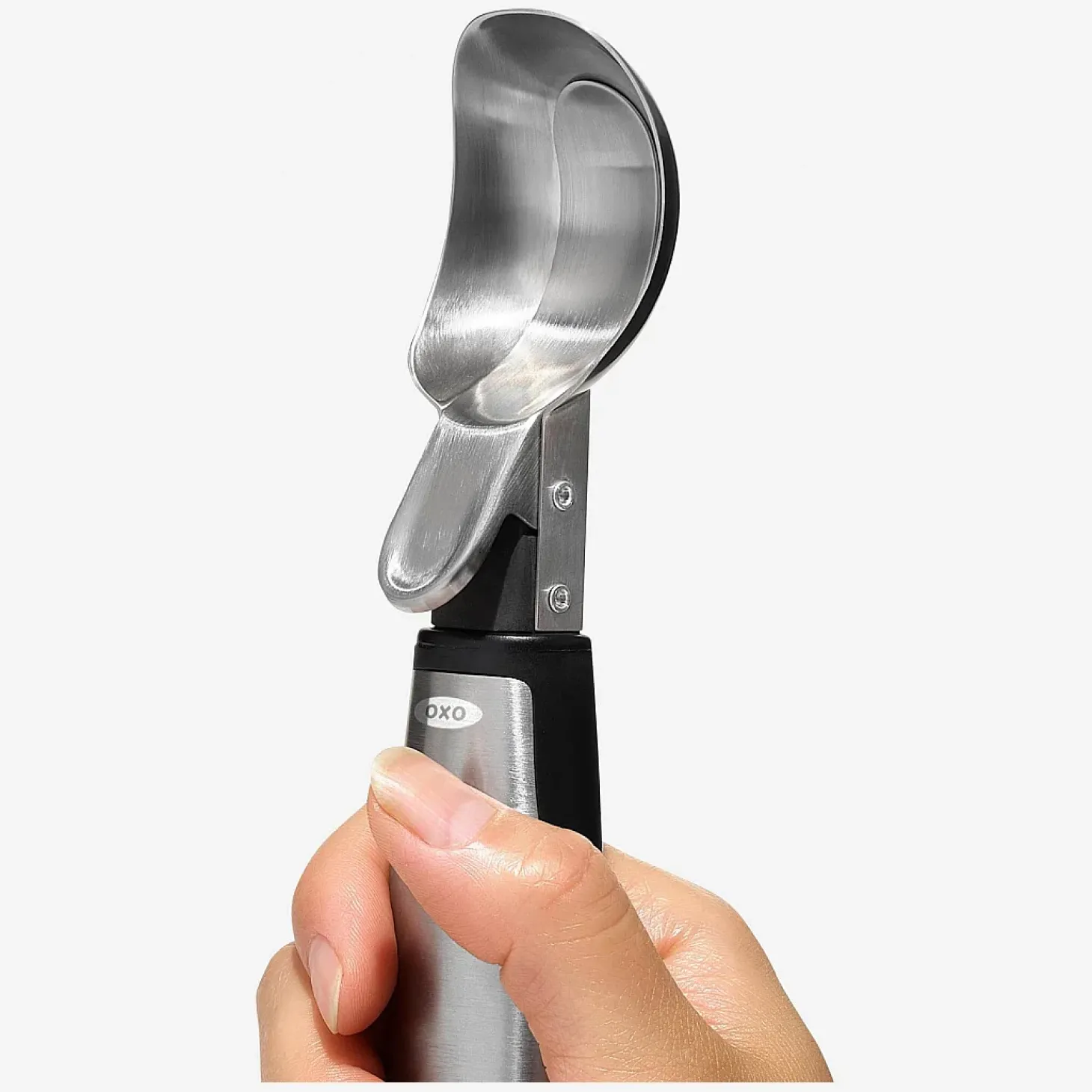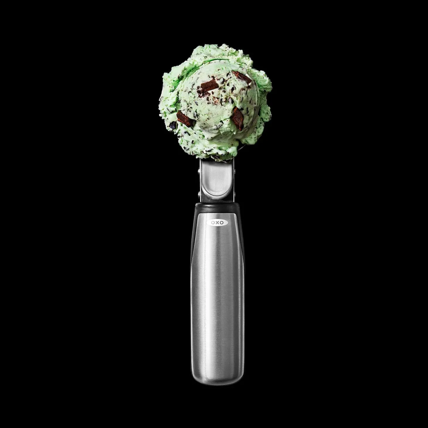 Avec la cuillère à glace Oxo à levier, vous réalisez de belles boules de glace, gourmandes et généreuses. Une simple pression sur le levier de la gâchette située sur le devant de la cuillère facilite le démoulage de la boule, offrant ainsi une utilisation rapide à une seule main.