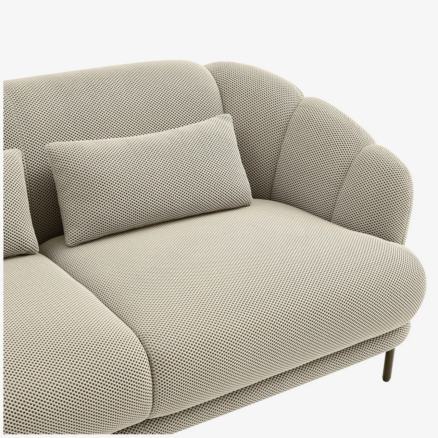 Le canapé 3 places Paraty en tissu 3D insuffle un caractère envoûtant dans le salon. La douceur de sa teinte sable réchauffe l’atmosphère pour un ensemble apaisant, renforcé par ses deux coussins assortis.